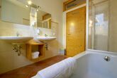Komfortables und großes Komfortzimmer mit Holzfußboden, Vorraum, separatem WC und geräumigem Bad (Dusche und Badewanne), sowie getrennten Schlaf- und Wohnzimmern. Eingerichtet im modernen alpinen Stil. Das Zimmer ist auch ideal als Familienzimmer für Familien mit zwei Kindern geeignet. (Wohnzimmer wird zum Kinder- und Wohnzimmer)