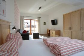 Die Zimmer verfügen über eine gemütliche Sitzecke mit Flachbildfernseher und Telefon, außerdem Bademäntel und Handtücher für den Sauna- und Schwimmbadbereich.