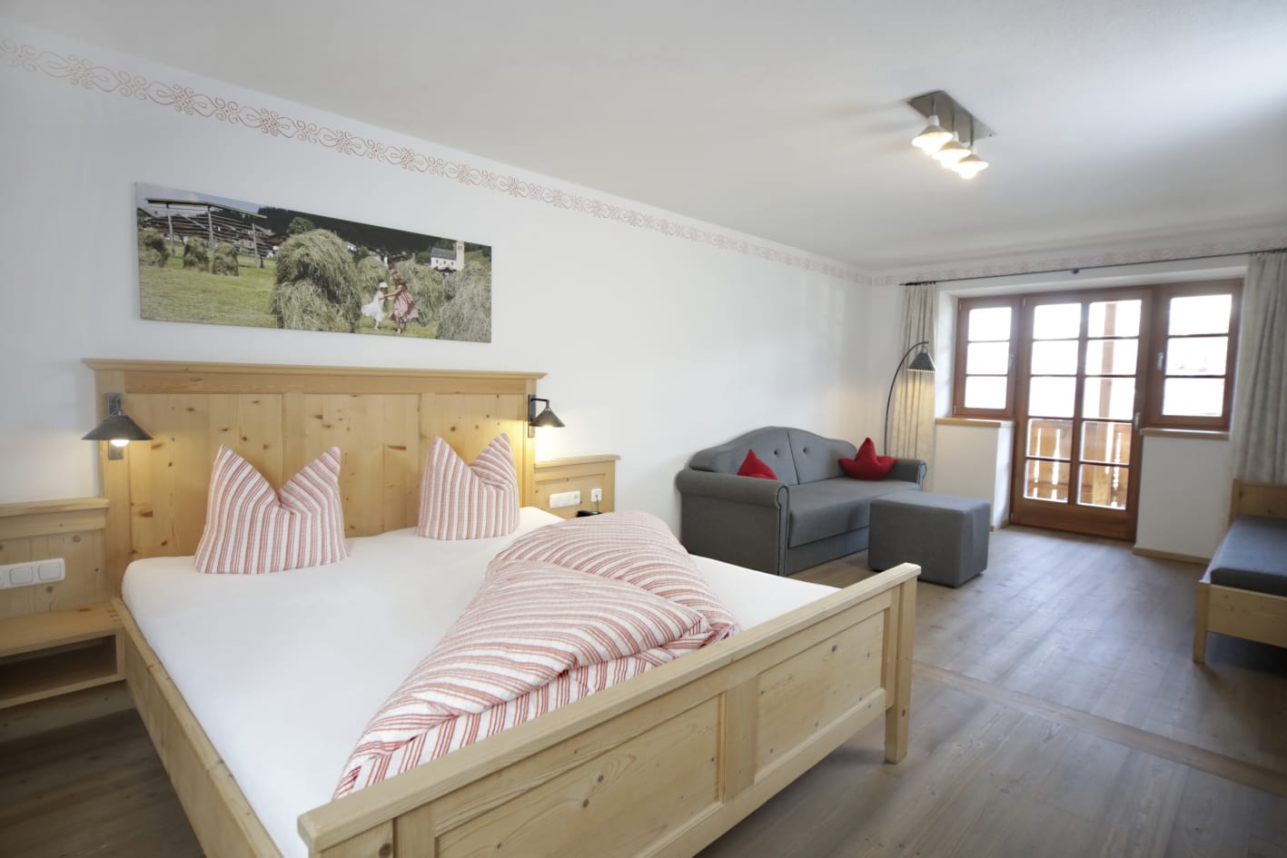 Die Balkonzimmer sind mit viel hellem Holz und ideal dazu passender Möblierung sowie Massivholzböden ausgestattet und verfügen zudem alle über einen sonnigen Balkon, welcher einen herrlichen Ausblick in die Karnischen Alpen bietet.