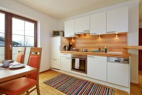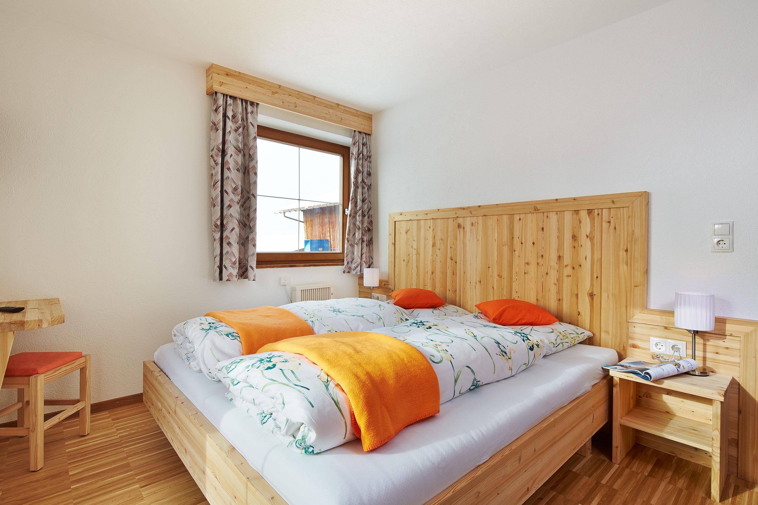 Appartement Lärche mit ca. 47 m² im 1. Obergeschoss besteht aus: 2 Doppelzimmer vom Tischler nach Maß mit Vollholzmöbeln aus Lärche eingerichtet und Kabel-TV; 1 Wohnküche mit Cerankochfeld, Kühlschrank, Kaffeemaschine mit Taps, Geschirrspüler, Wasserkocher, Toaster und gemütlicher Essecke; 1 Badezimmer mit Duschwänden aus Glas, Marmor-Waschtisch, Föhn und separatem WC; Unsere „Lärche“ verfügt über einen Panoramabalkon.