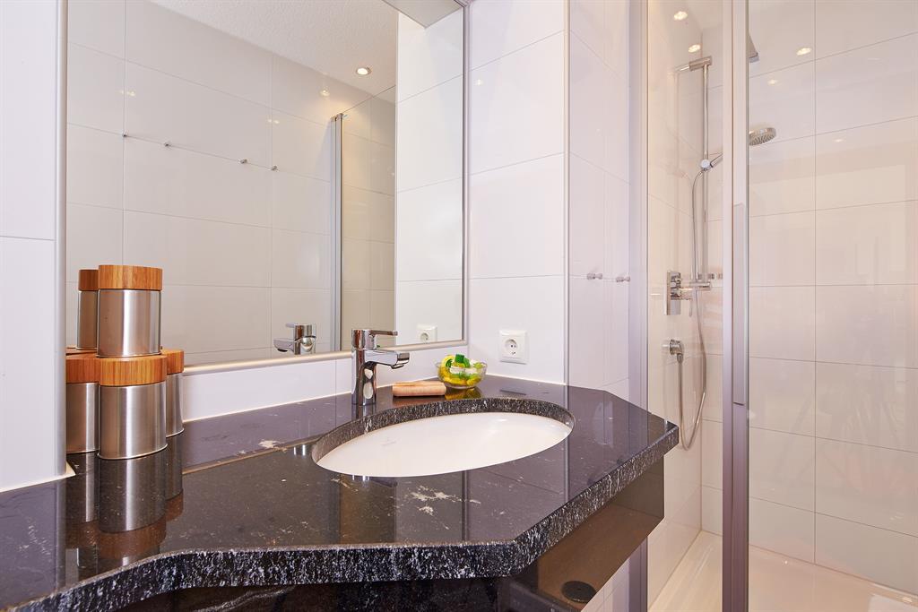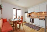 Appartement Lärche mit ca. 47 m² im 1. Obergeschoss besteht aus: 2 Doppelzimmer vom Tischler nach Maß mit Vollholzmöbeln aus Lärche eingerichtet und Kabel-TV; 1 Wohnküche mit Cerankochfeld, Kühlschrank, Kaffeemaschine mit Taps, Geschirrspüler, Wasserkocher, Toaster und gemütlicher Essecke; 1 Badezimmer mit Duschwänden aus Glas, Marmor-Waschtisch, Föhn und separatem WC; Unsere „Lärche“ verfügt über einen Panoramabalkon.
