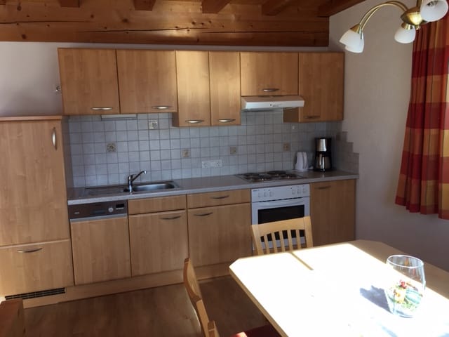 Die Ferienwohnung ist 70 qm groß, hat zwei getrennte Doppelbettzimmer, Wohnküche mit Eßecke und Wohnecke,