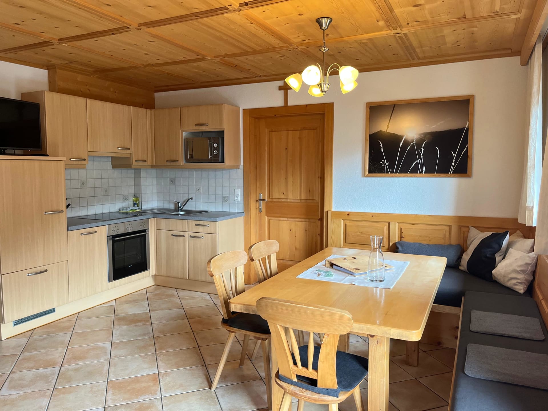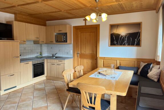 • Wohlig warme Ferienwohnung (3 separate Schlafzimmer), Holztäfelung aus naturbelassenem Fichtenholz, Sonnig und lichtdurchflutet, Küche ist komfortabel ausgestattet: Vier-Plattenherd, Backofen, Mikrowelle, Wasserkocher, Kühlschrank