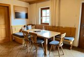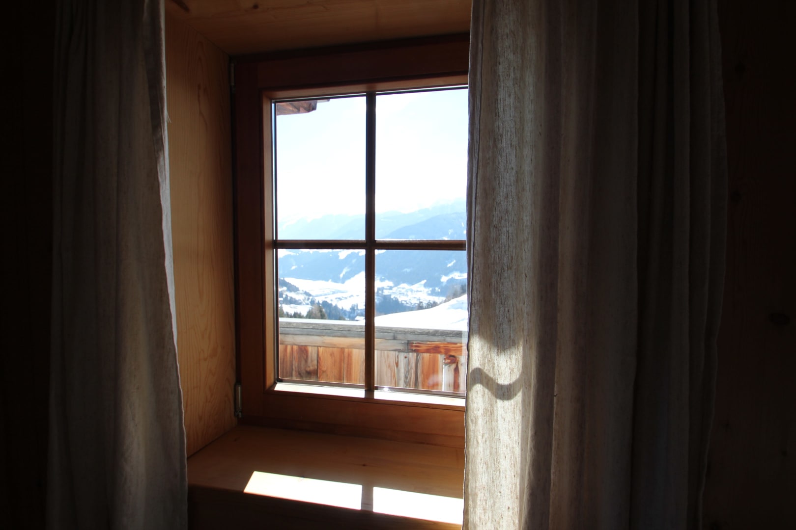 Die Morgensonne scheint bis in die Wohnung hinein und so wird schon das Frühstück (auf der eigenen Terasse) zum Erlebnis. Die Holztäfelung der Zimmer verbreitet wohlige Athmosphäre und beide Wohnung sind sehr geräumig und lichtdurchflutet. Genauso geräumig fühlt sich der Ausblick an, bis hinunter in den Ort Sillian mit der Burg Heinfels.
