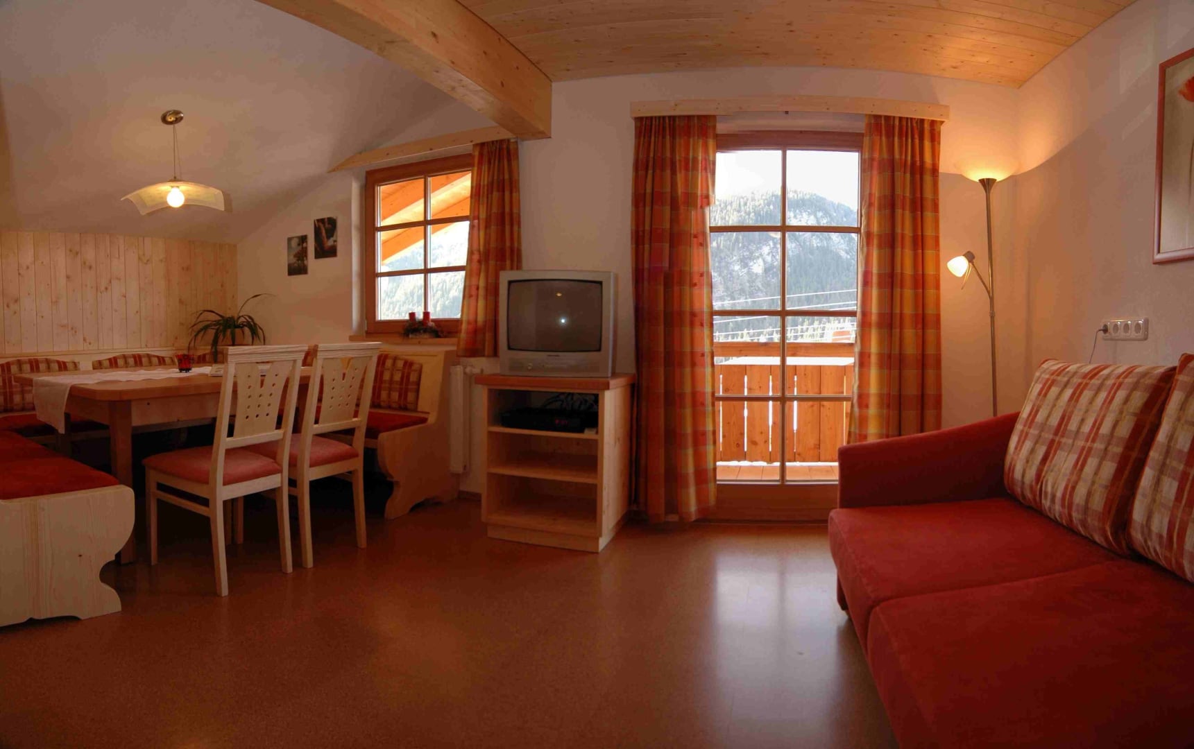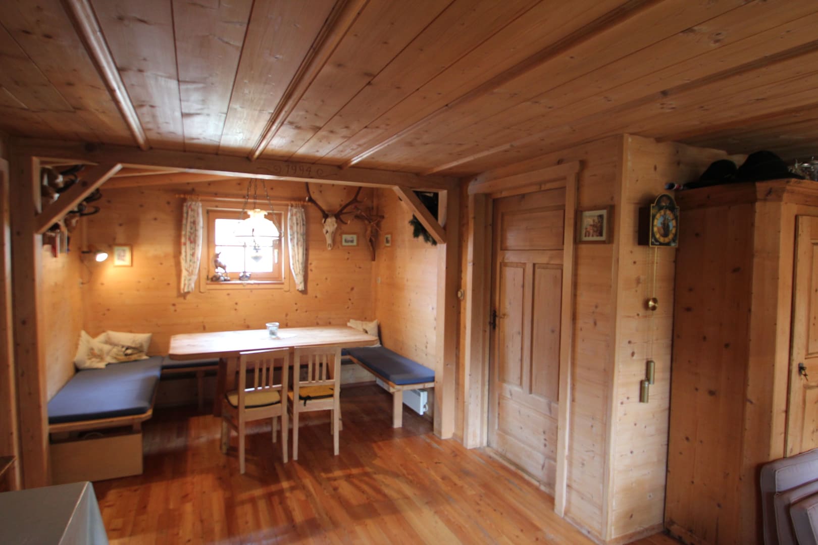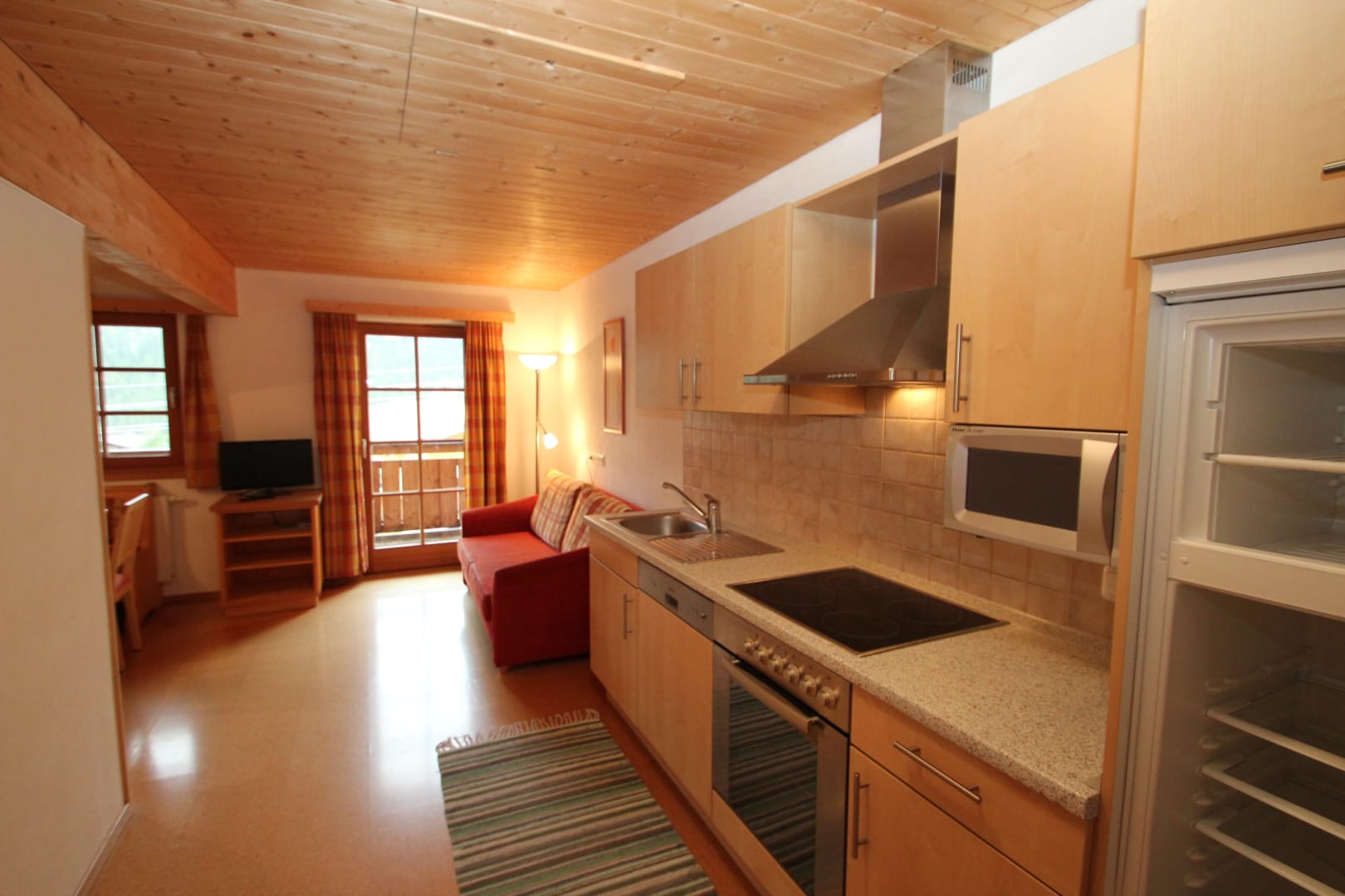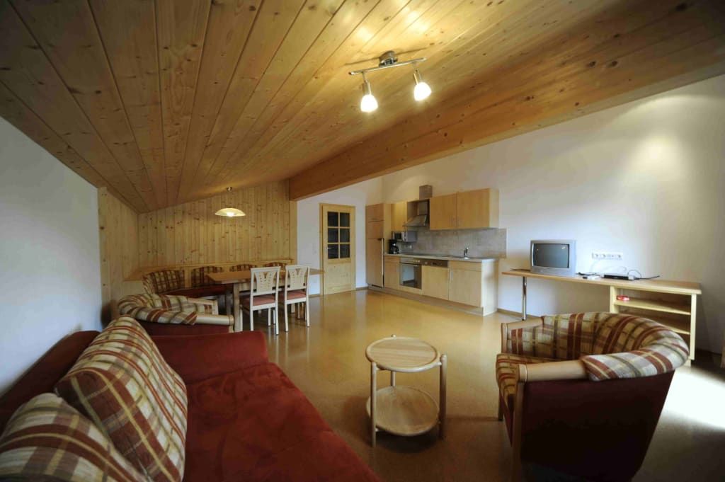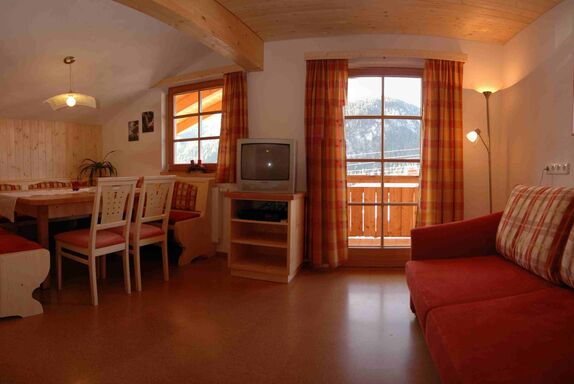 Unsere Ferienwohnung in der Rimmlstube: Wohnraum mit Eckbank, Sofa, Küchenblock, Kühlschrank, Dunstabzug, Herd mit Backrohr, Spülmaschine, Mikrowelle, Kaffeemaschine. 2 Schlafzimmer. Diele. Dusche/WC mit Doppelwaschbecken, Haarfähn, Kosmetikspiegel. Inkl. Bettwäsche, Handtücher, Parkplatz, W-Lan. Direkt am Skilift, Loipe. Bushaltestelle. Brötchenservice im Rimmlhof - 3 Gehminuten entfernt.