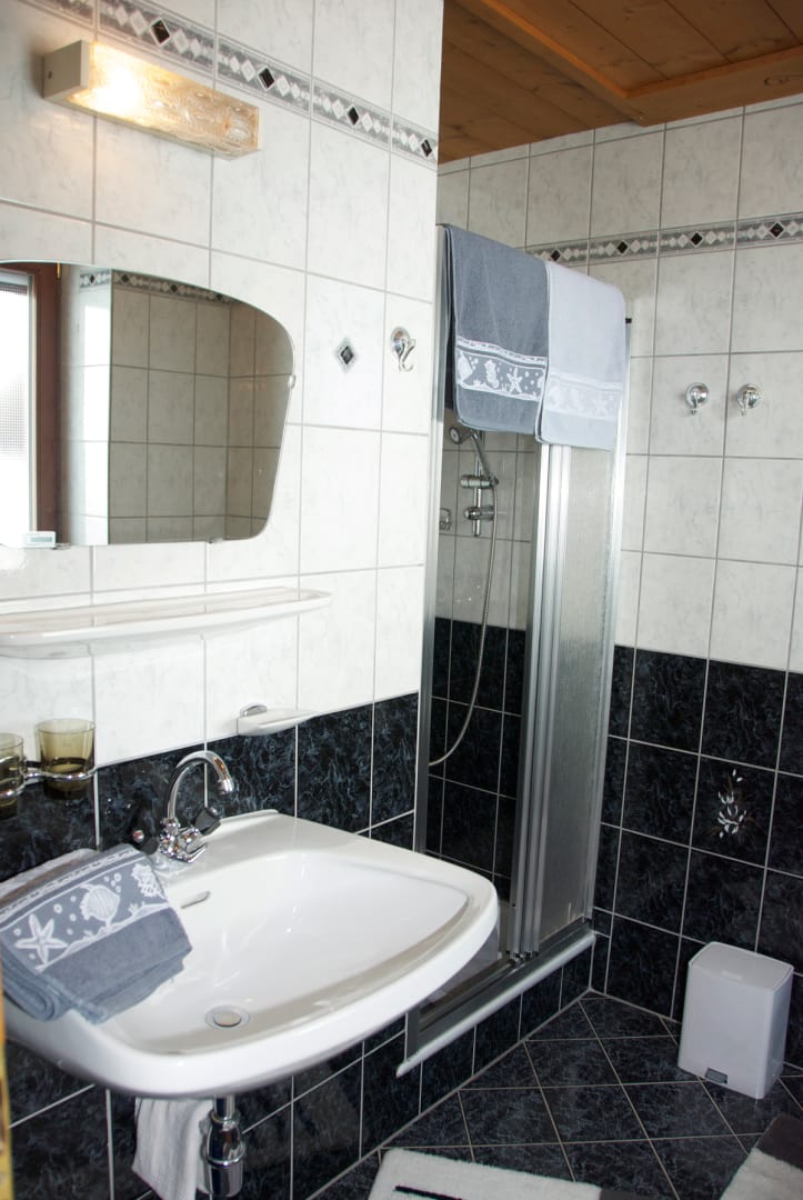Die Ferienwohnung Kanzbergblick liegt im ersten Stock unseres Berghofes. Die große geräumige Ferienwohnung mit großem Sonnenbalkon erreichen sie über einen eigenen Eingang mit separatem Treppenhaus.