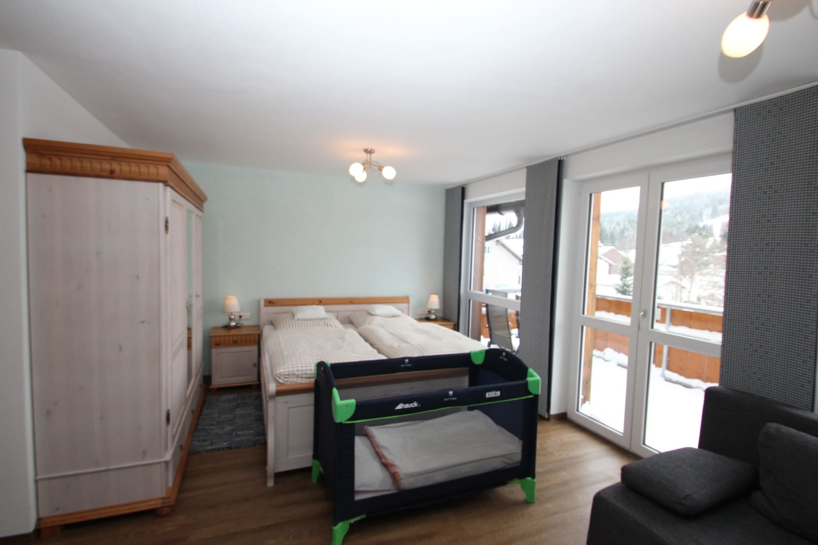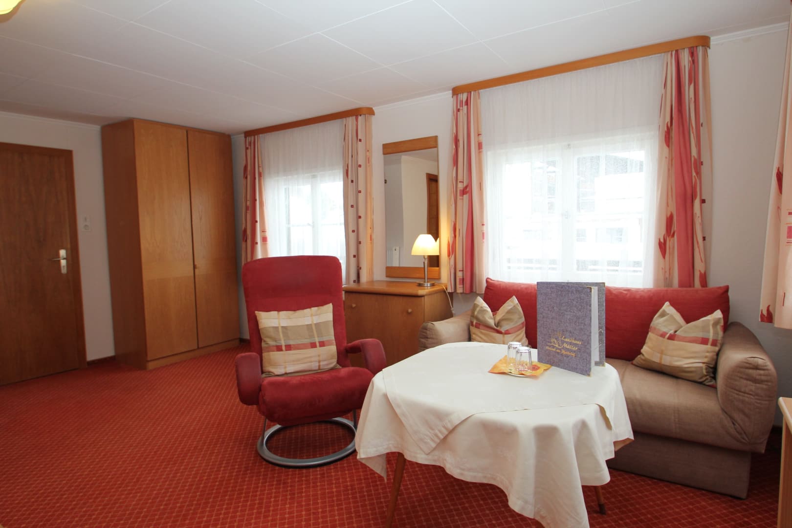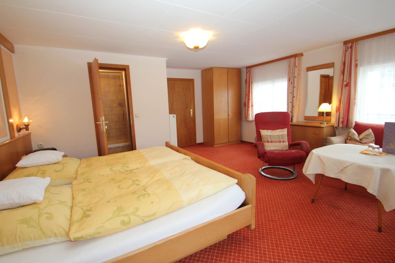 Doppelzimmer, auch als Einzelzimmer zu nutzen, Zugang zum Ostbalkon über den Gang.