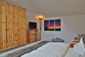 Unsere großen Ferienwohnungen sind mit zwei Schlafzimmern ausgestattet. Die helle Wohnküche ist der gemütliche Treffpunkt für alle Bewohner dieser Wohnungen.