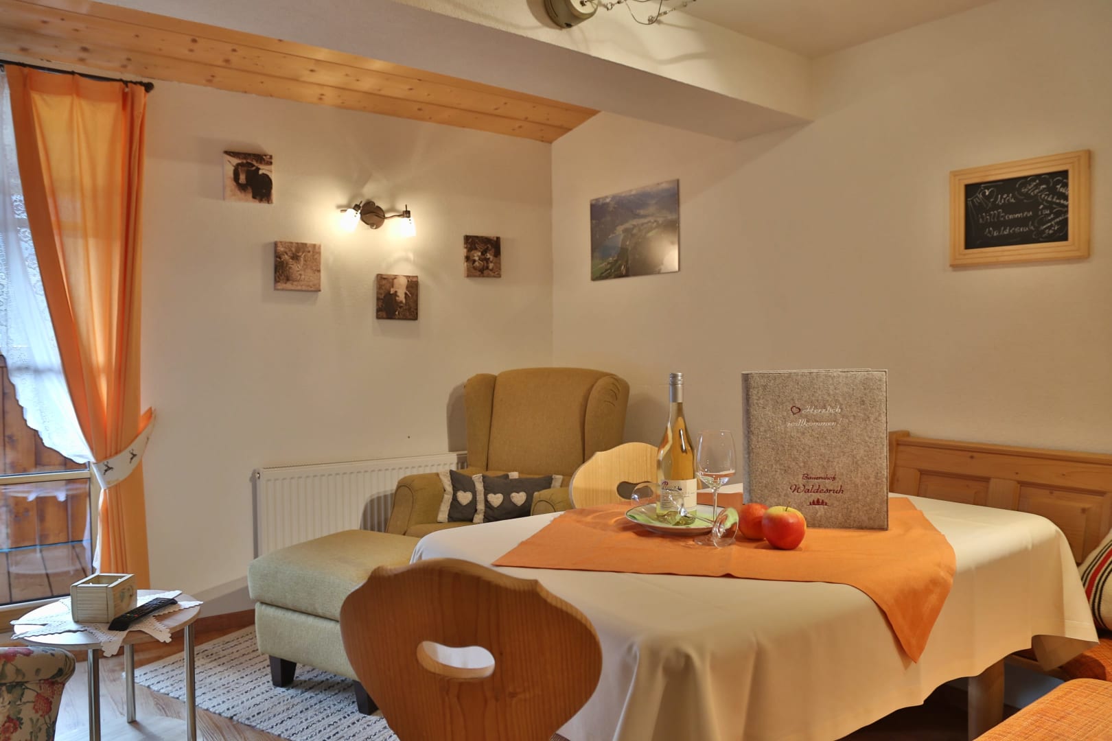 Hoftypische Besonderheiten: viele Tiere zum Streicheln, eigene Sauna, Schiraum, kostenlose Leihrodel, Kinderbett und -hochstuhl Brötchenservice nach Wunsch! In allen Wohnungen befinden sich: Sat-TV, Radiowecker, Zimmersafe, Haarfön NEU: JEDER WOHNUNG STEHT EIN KOSTENLOSER GARAGENPLATZ ZUR VERFÜGUNG! Kinderermäßigung!