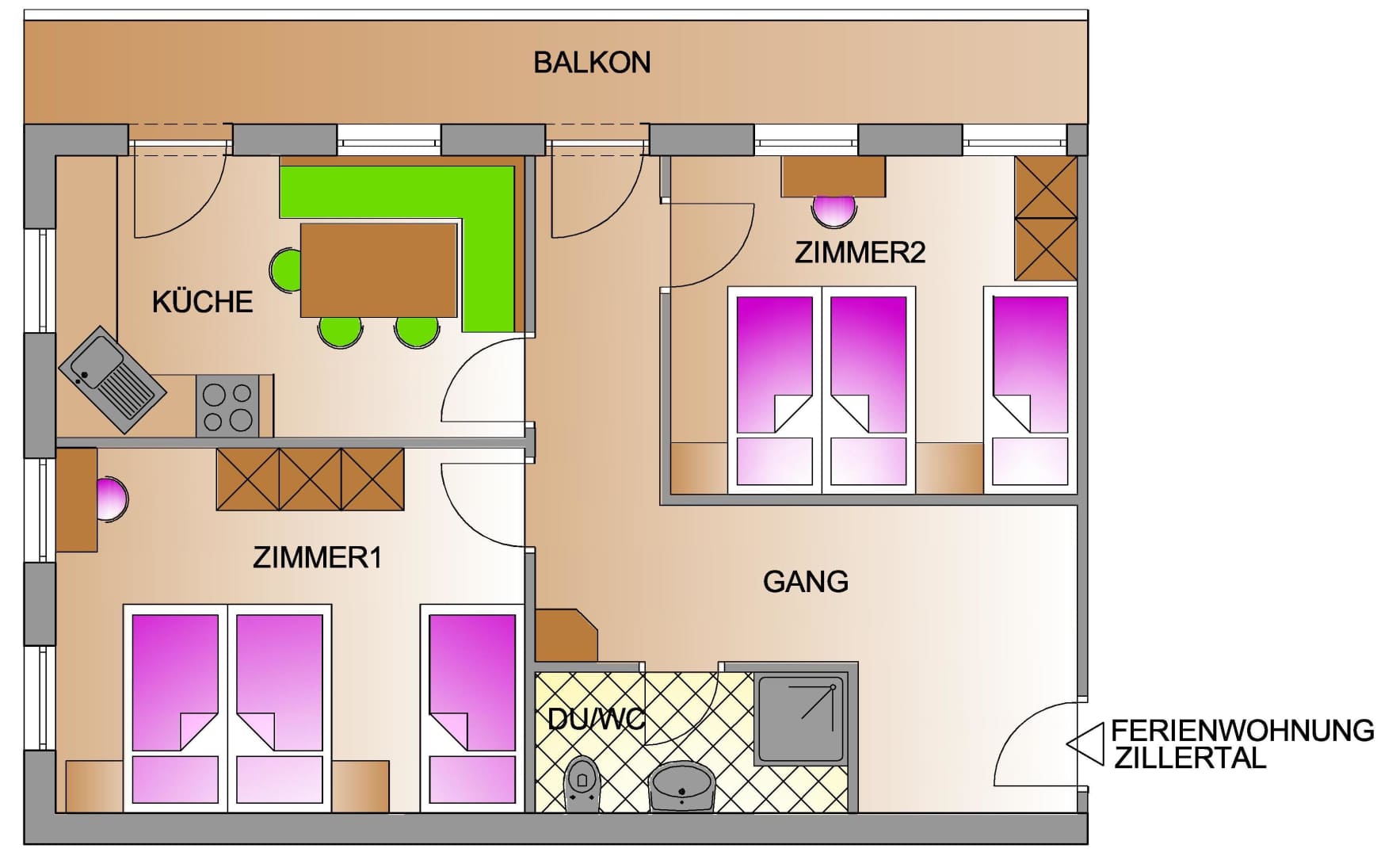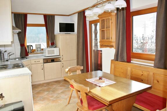 Urgemütlich und mit viel Liebe eingerichtet ist unsere FW mit Balkon. Ausstattung: Wohnküche, DU/WC, 2 Schlafzimmer (max. 6 Betten), Gang, sämtliches Geschirr, Geschirrspüler, Kaffeemaschine, Micro, SAT-TV Anschluss, Bettwäsche, Handtücher, Tischwäsche, u.v.m. Für Allergiker (Neurodermitis-,Asthma- und Allergiekranke) allergienfreundlich ausgestattet.