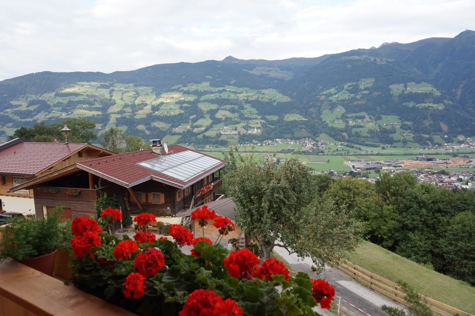 Gemütliches Doppelzimmer im Tiroler Stil, 2018 neu erbaut, mit Balkon, Dusche und WC und Talblick ins Zillertal