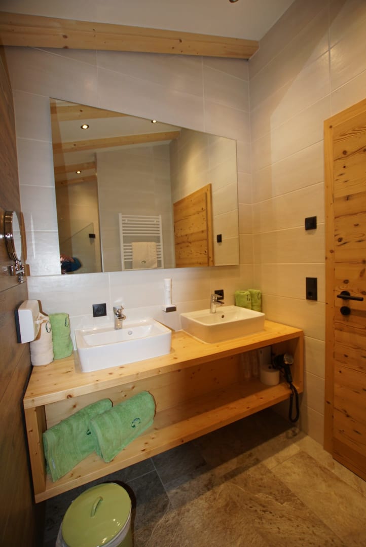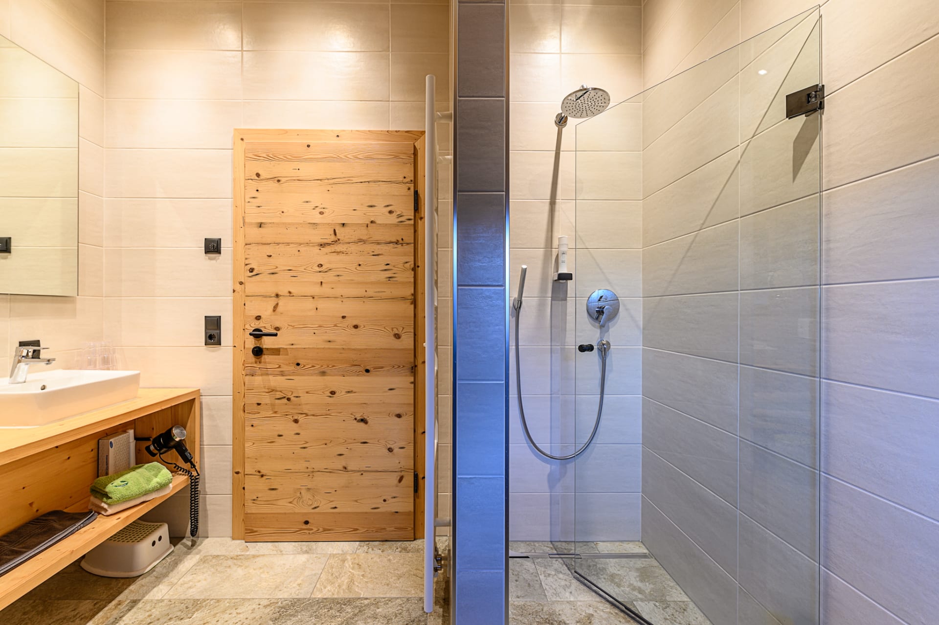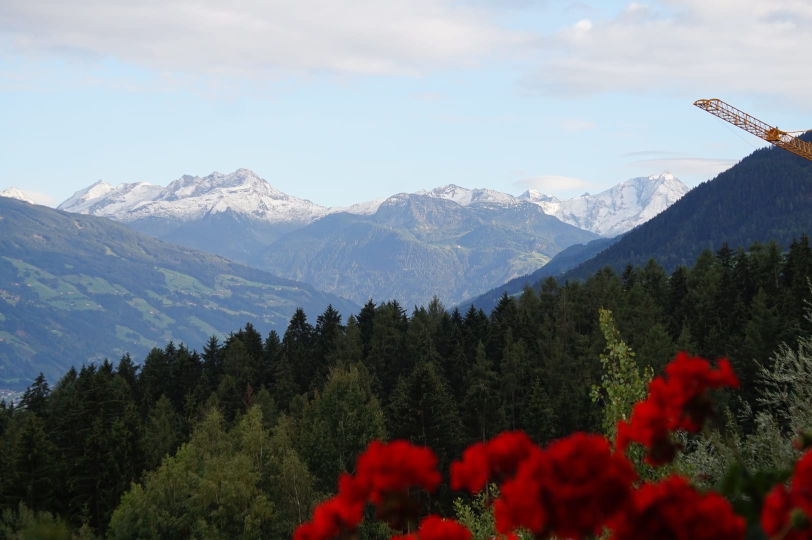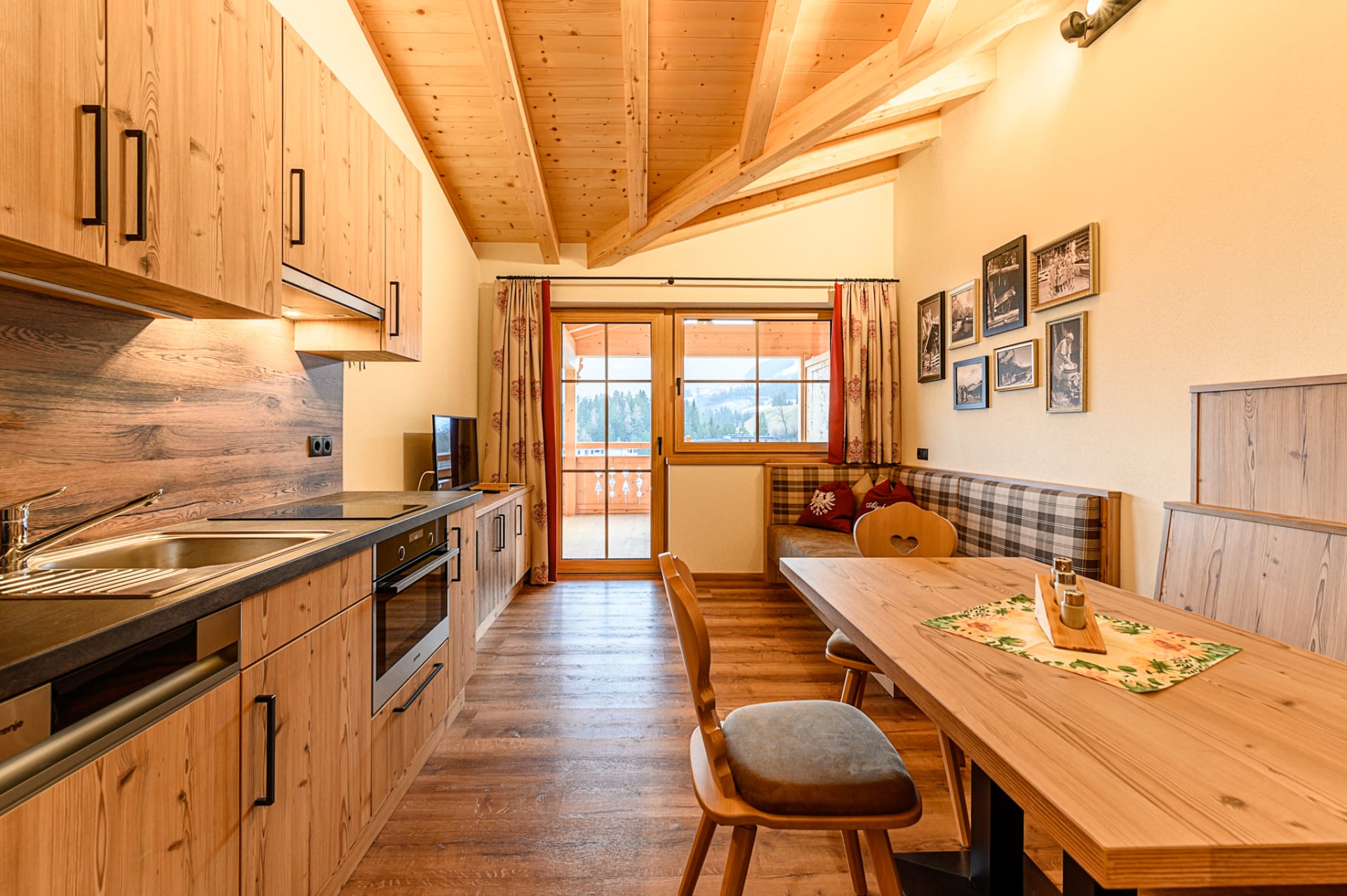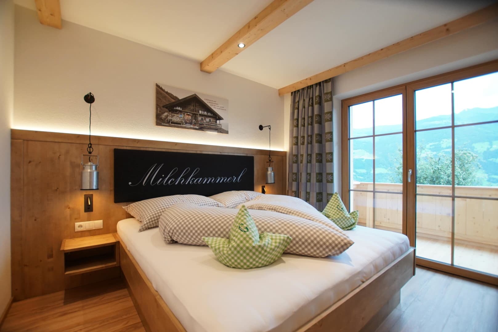 Neues Apartement im Tiroler Alpine Style ausgestattet mit zwei Schlafzimmer mit einem Doppelbett und 1 Extra Bed und das 2 Schlafzimmer mit 2 Einzelbetten, großräumigen Garderobenvoraum, Dusche und WC, Wohnküche mit gemütlicher Bauernmöble-Sitzecke, Zusatzliege im Doppelzimmer, und ein Zusatzbett in der Wohnraumküche mit Sat-Tv. Von der Küche aus direkter Zugang auf die Terrasse und Balkon mit wunderschönem Blick auf die Zillertaler Alpen.