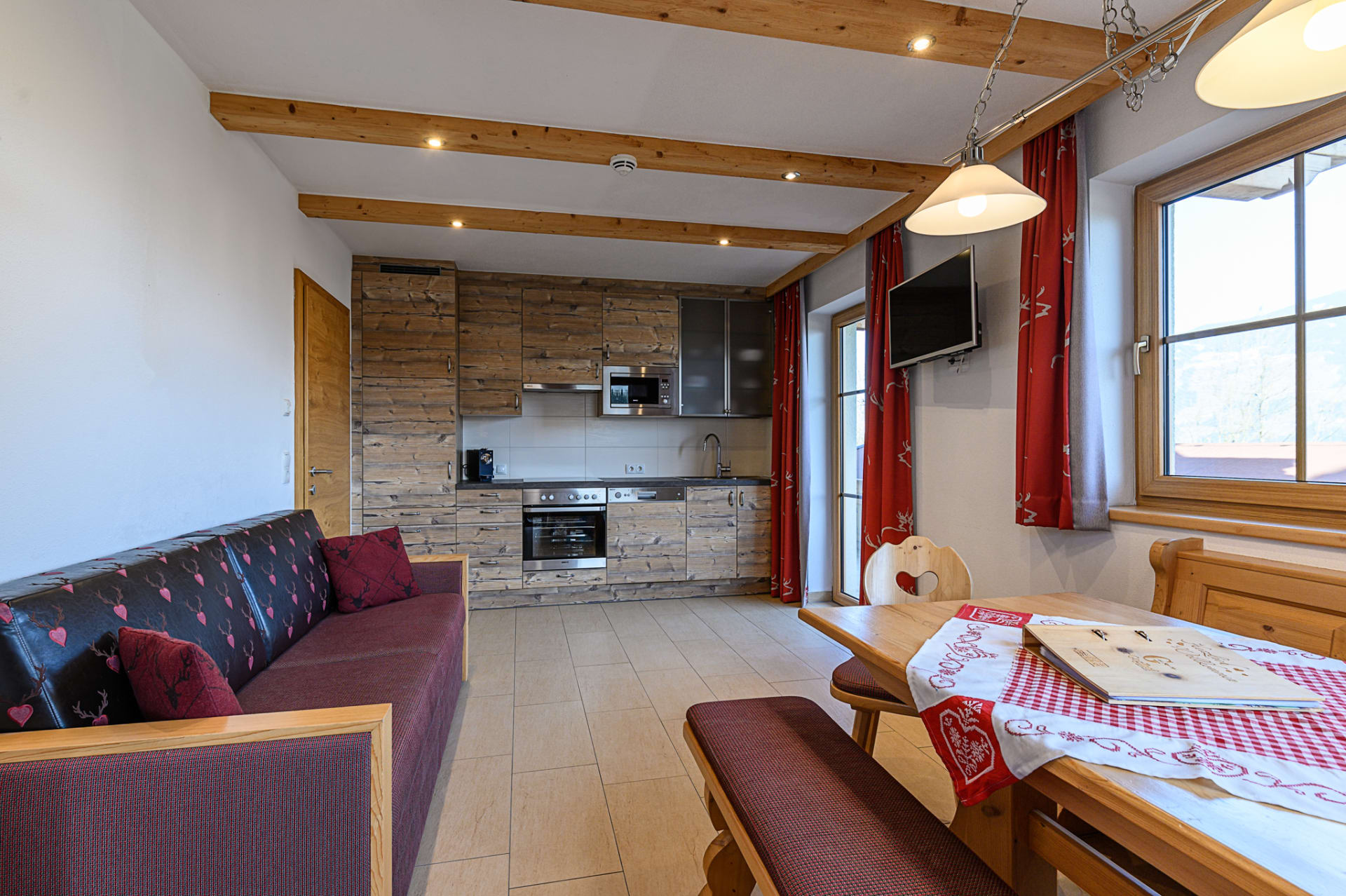 Neu erbautes Bauernhof Appartementhaus mit 3 Appartements. Appartement Wilder Gogl verfügt über 2 getrennte Doppelzimmer mit je einem Zusatzbett, einer großen Küche mit gemüchtlicher Sitzecke und Sofa, Spülmaschine, LCD Fernseher in jedem Zimmer, Dusche und WC; seperates WC, 2 Balkone. Eingerichtet im typischen Tiroler Landhausstil.