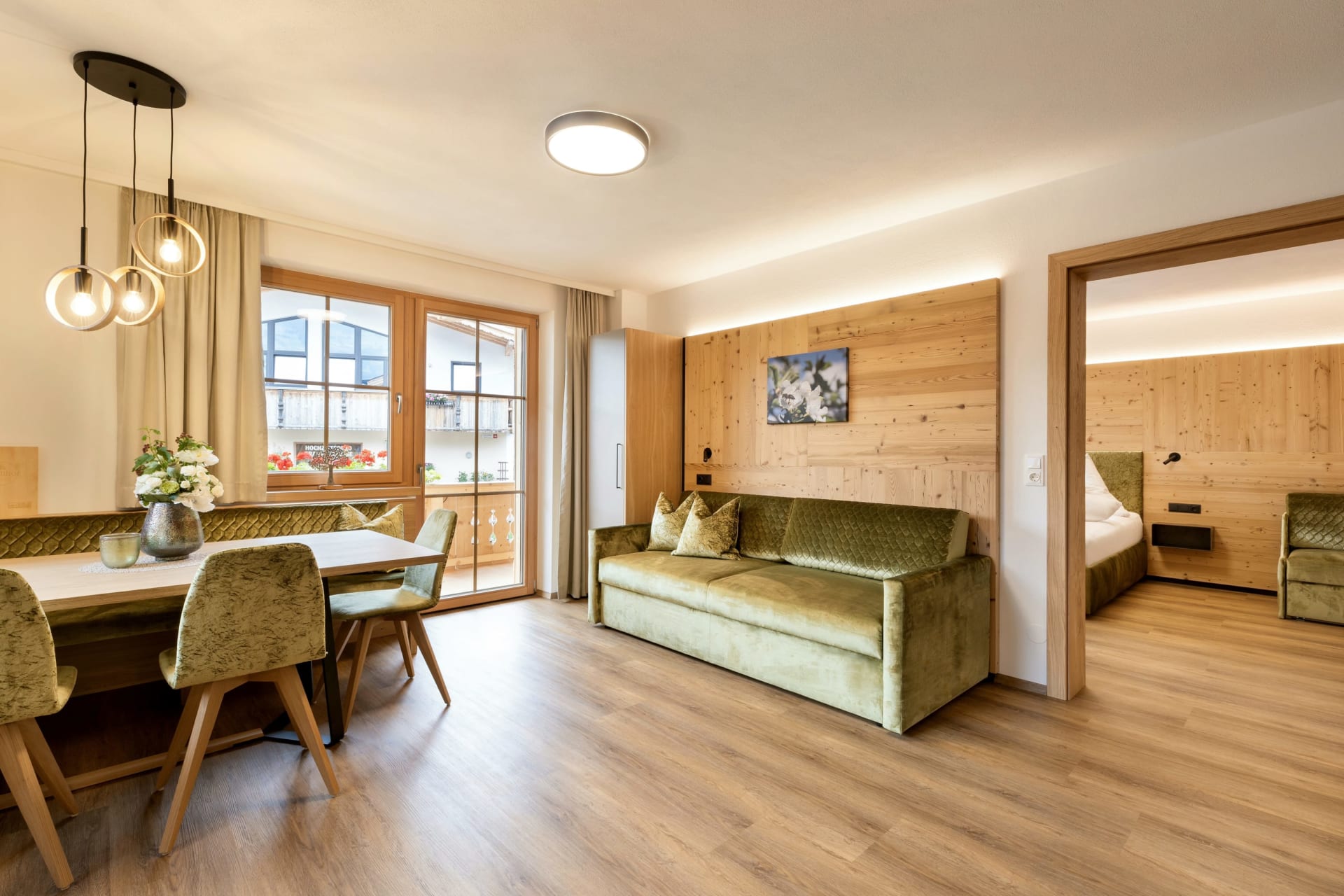 Unser Apartment Schlagalm lässt wohl absolut keine Wünsche offen. Groß und sehr gemütlich, ideal für den Familienurlaub. Deine kleine Wellnessoase für daheim bietet unsere Infrarotkabine, welche dich an kalten Tagen wärmt. Der Blick vom Wohnzimmer aus lässt unsere Alm erkennen, daher der Name. Eines der beiden Schlafzimmer hat sein eigenes Bad. Auf unserer Lese Terrasse kannst du am Abend in Ruhe sitzen, oder sie kann auch als Spielzone von den Kindern genutzt werden, wobei keinerlei Gefahr für die Kleinen besteht durch die sichere Ausrichtung. Toben und spielen für die Kids, während du dich in der Infrarot Kabine entspannst. Liebevoll und gemütlich eingerichtet im Altholzstil.