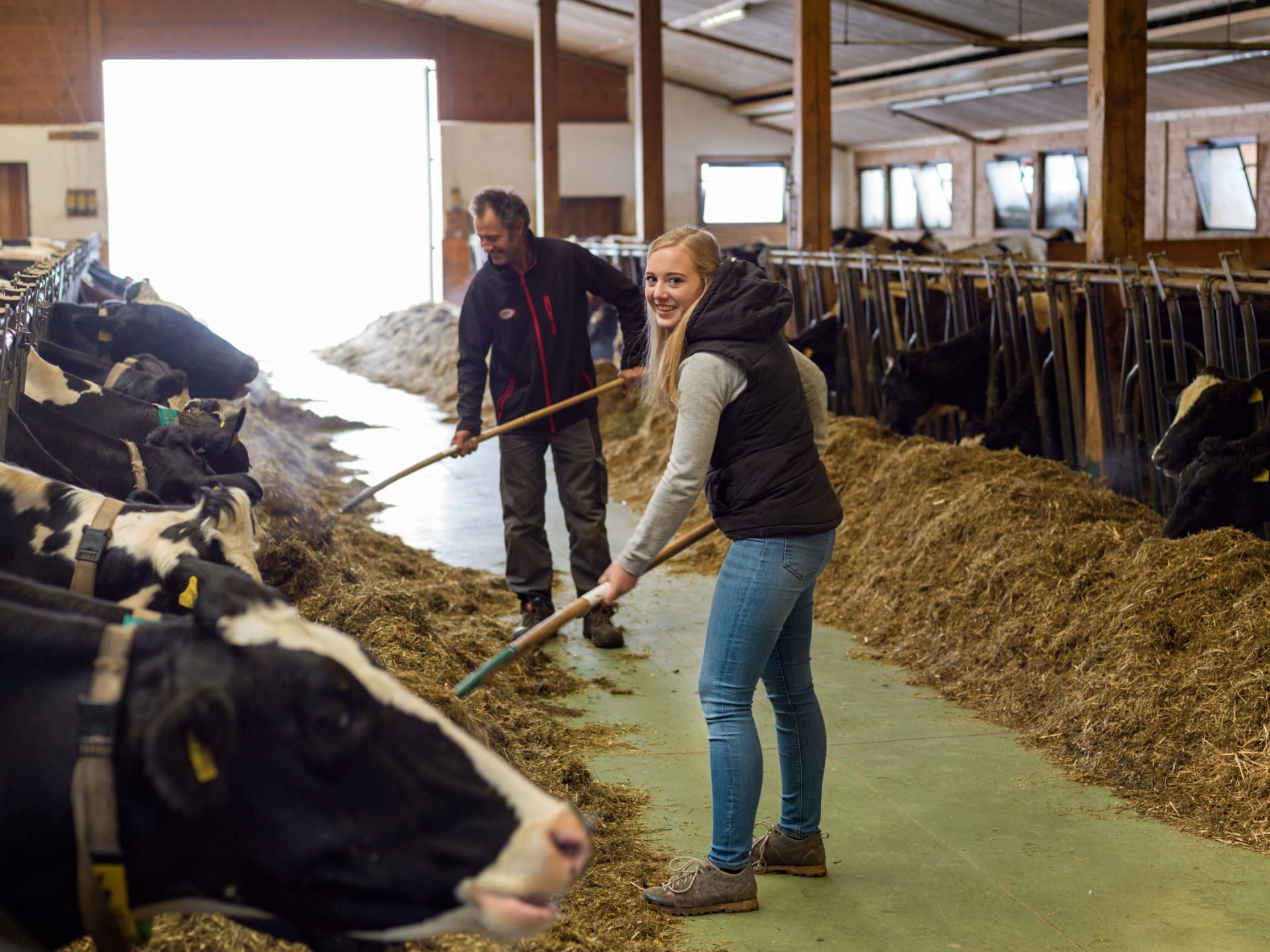 Unser Hauptschwerpunkt ist die Milchviehzucht , wobei aus einem kleinen Teil Käse produziert wird. Das gesamte Vieh geht im Sommer auf die eigene Schlagalm.