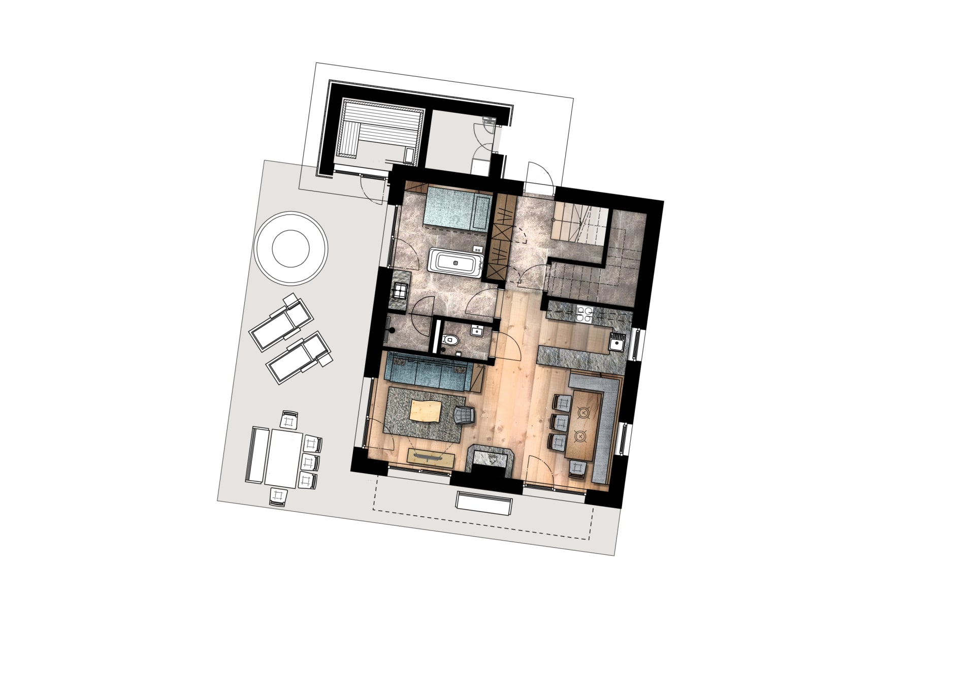 • Das Highlight ist der private Spa mit freistehender Badewanne, Sauna mit Bergblick und Naturstein-Badewanne unter freiem Himmel.