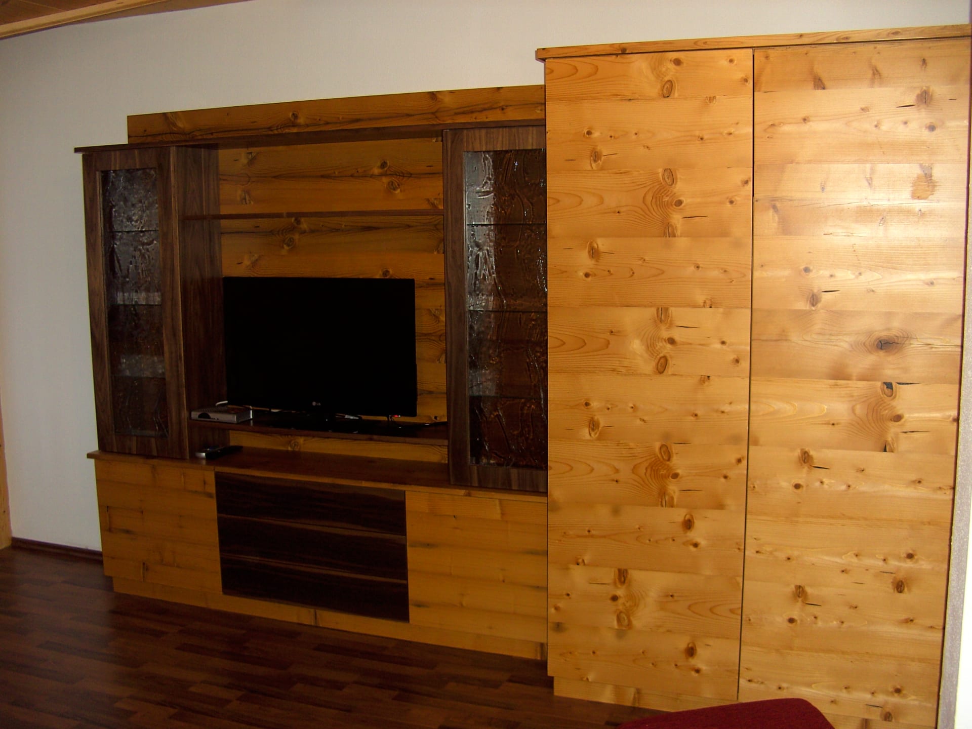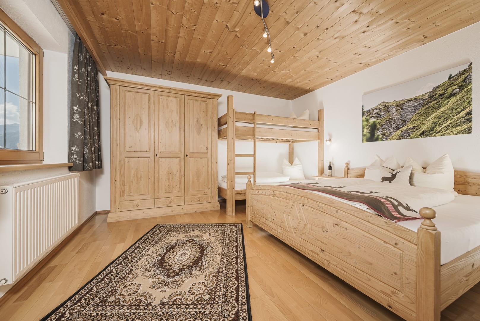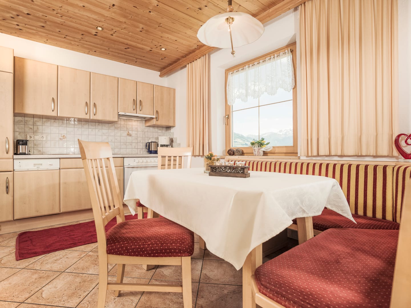 Schönes Apart mit ca. 65 m², gebaut mit viel Fichtenholz. Ausgestattet mit einem Vierbettzimmer, Dusche und Waschtisch, WC extra, Fernseher mit SAT, Küche mit Geschirrspüler, Backofen, Wasserkocher, Kaffeemaschine etc.
