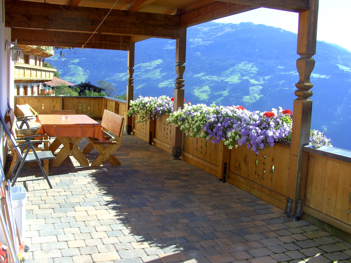 Appartement „ Panorama“Leben mit dem Panorama Blick wer kann das schon.Auf unserer großzügigen Terasse genießen Sie Ruhe und Entspannung.Blick ins Zillertal