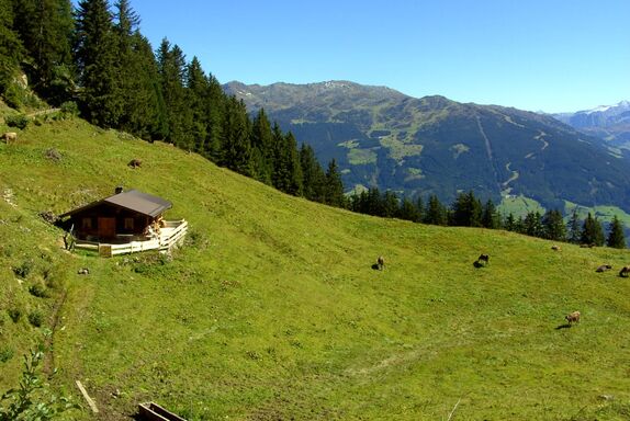 Unsere Almhütte Zillertal liegt auf ca. 1800 m Seehöhe, an einer Abzweigung von der Zillertaler Höhenstraße. Die Almhütte ist mit dem Auto sehr gut erreichbar, ein Parkplatz ist vor Ort. Sie liegt sehr ruhig in grünen Wiesen mit einem wunderschönen Panorama Blick in die Zillertaler Bergwelt bis hin zum Hintertuxer Gletscher.Für einen Familien- und Wanderurlaub ist unsere Almhütte Zillertal etwas ganz besonderes - Erholung pur.Unsere neu renovierte Almhütte Zillertal verfügt über 2 getrennte Schlafbereiche, ein Matrazenlager, eine komplett ausgestattete Wohn-Essküche mit einer schönen Eckbank, ein modernisiertes Badezimmer mit fließend warmen Wasser und WC.Unsere Almhütte ist etwas für Liebhaber, zurück zum Ursprung. Morgens das Knistern des Feuers im Ofen, der die Hütte zugleich erwärmt, und abends bei Kerzenschein die Gemütlichkeit genießen.Zu unserer Almhütte gehört auch eine eigene Trinkwasserquelle. Wasser ist Leben, Sie werden spüren wie erfrischend und gesund das Wasser auf Körper und Seele wirkt, auch bei der Pflege werden Sie es merken, wie sanft und weich sich Ihre Haare und Haut anfü gibt auch Stromversorgung.