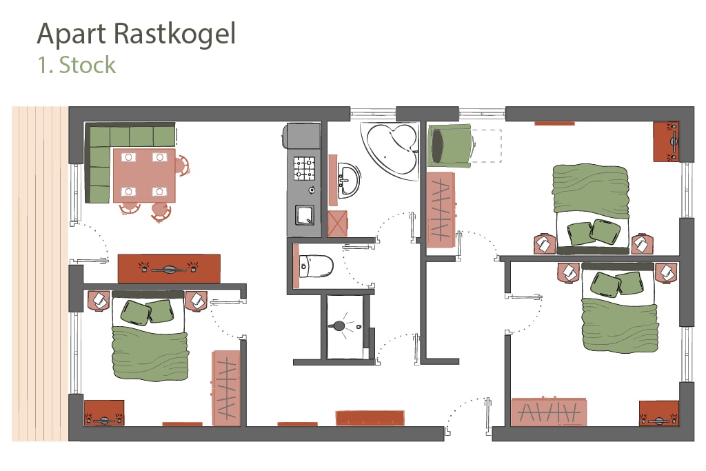 In unseren Apartments und Suiten genießen Sie modernsten Komfort und werden sich gleichzeitig durch den traditionellen Stil von Architektur und Interieur in einer wohligen Atmosphäre wiederfinden. Weiters besitzt jede unserer Wohnungen entweder einen 8 m langen Balkon oder eine Terrasse mit Garten.