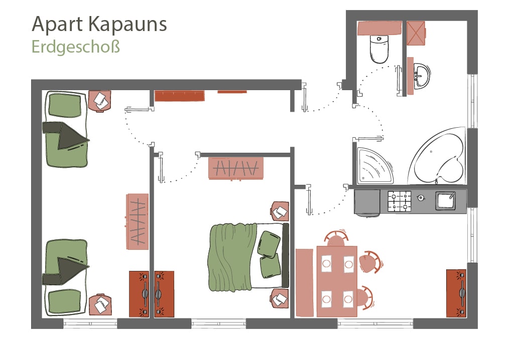 In unseren Apartments und Suiten genießen Sie modernsten Komfort und werden sich gleichzeitig durch den traditionellen Stil von Architektur und Interieur in einer wohligen Atmosphäre wiederfinden. Weiters besitzt jede unserer Wohnungen entweder einen 8 m langen Balkon oder eine Terrasse mit Garten.
