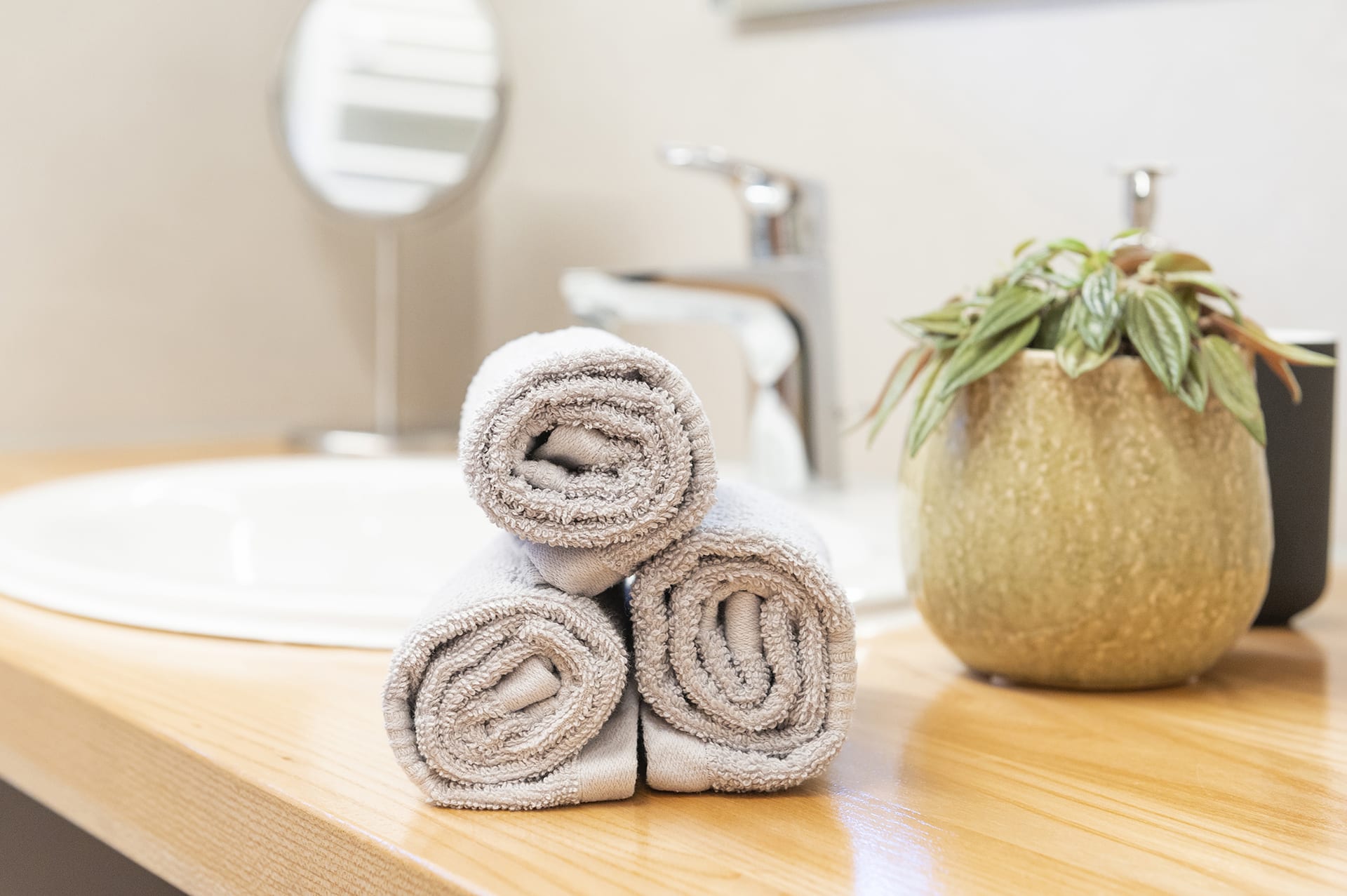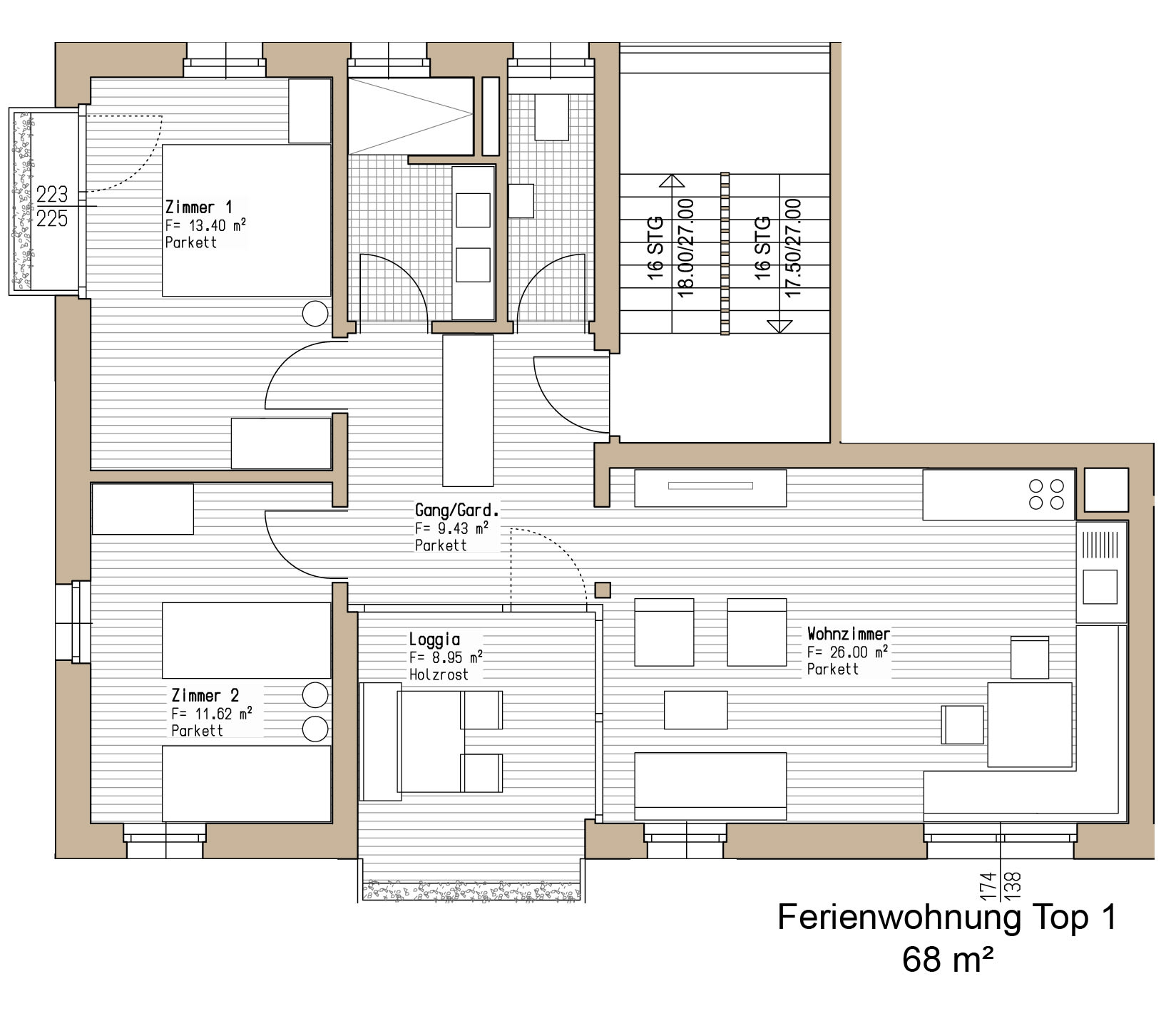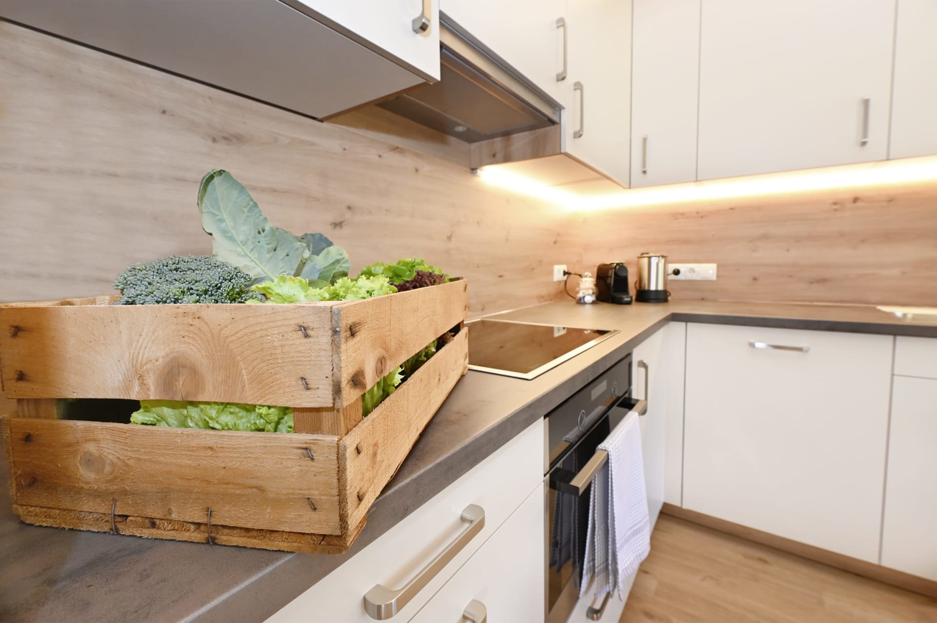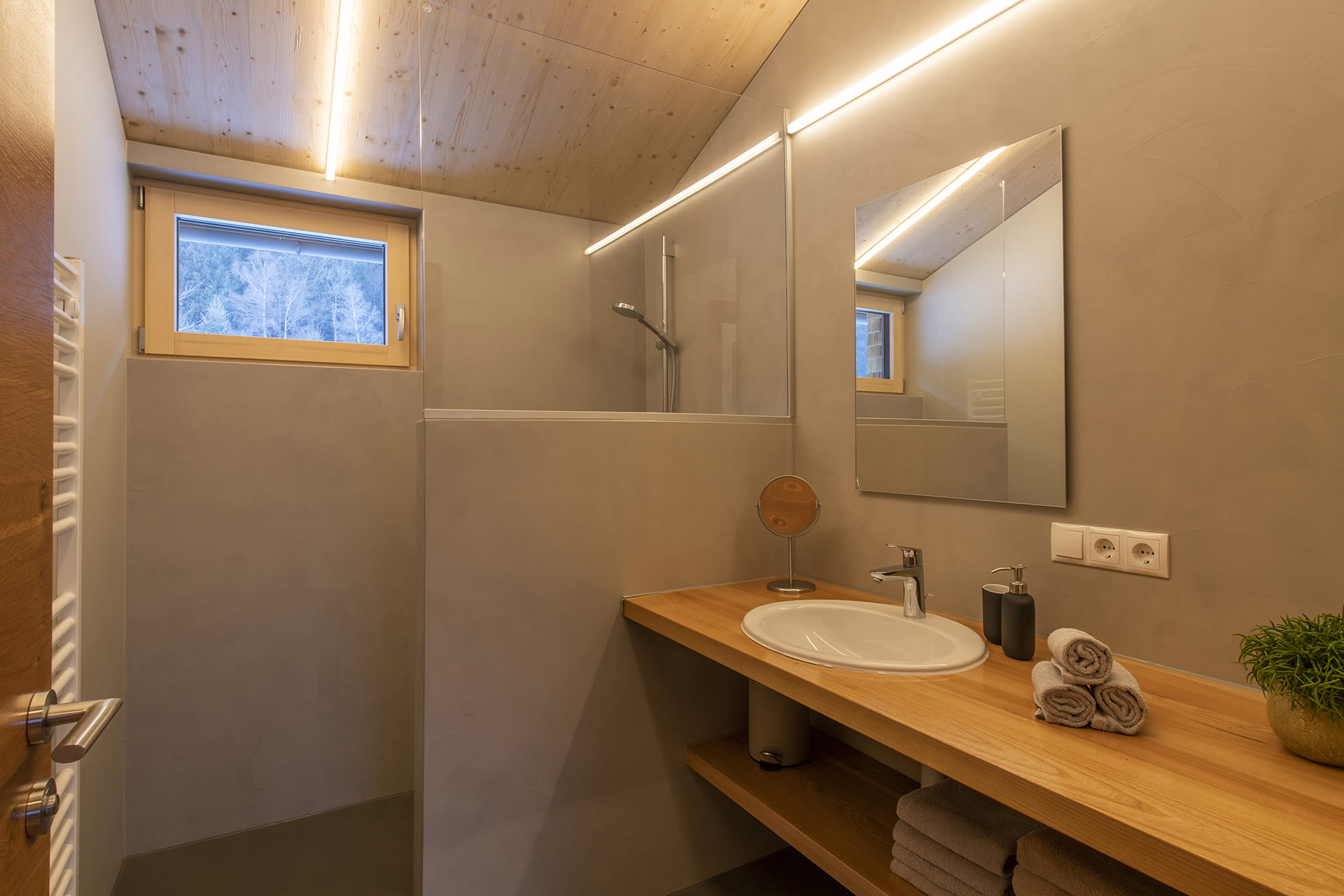 NEU! Mit heimischem Holz eingerichtete, moderne Wohnung mit Wohnküche inkl. gemütlicher Sitzecke mit Ausziehcouch. Panoramablick und direktem Zugang zur Loggia. 2 separate Schlafzimmern, Badezimmer mit Dusche und separatem WC.