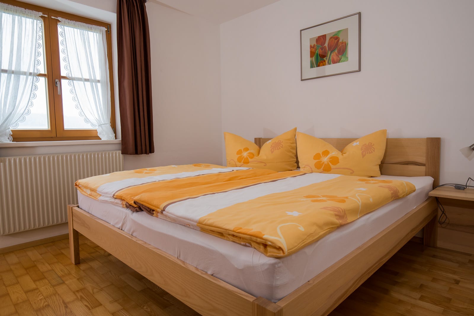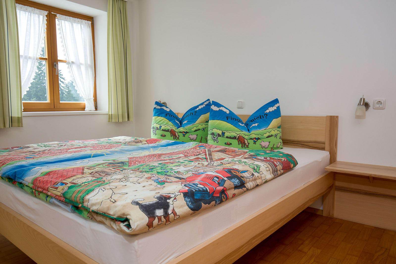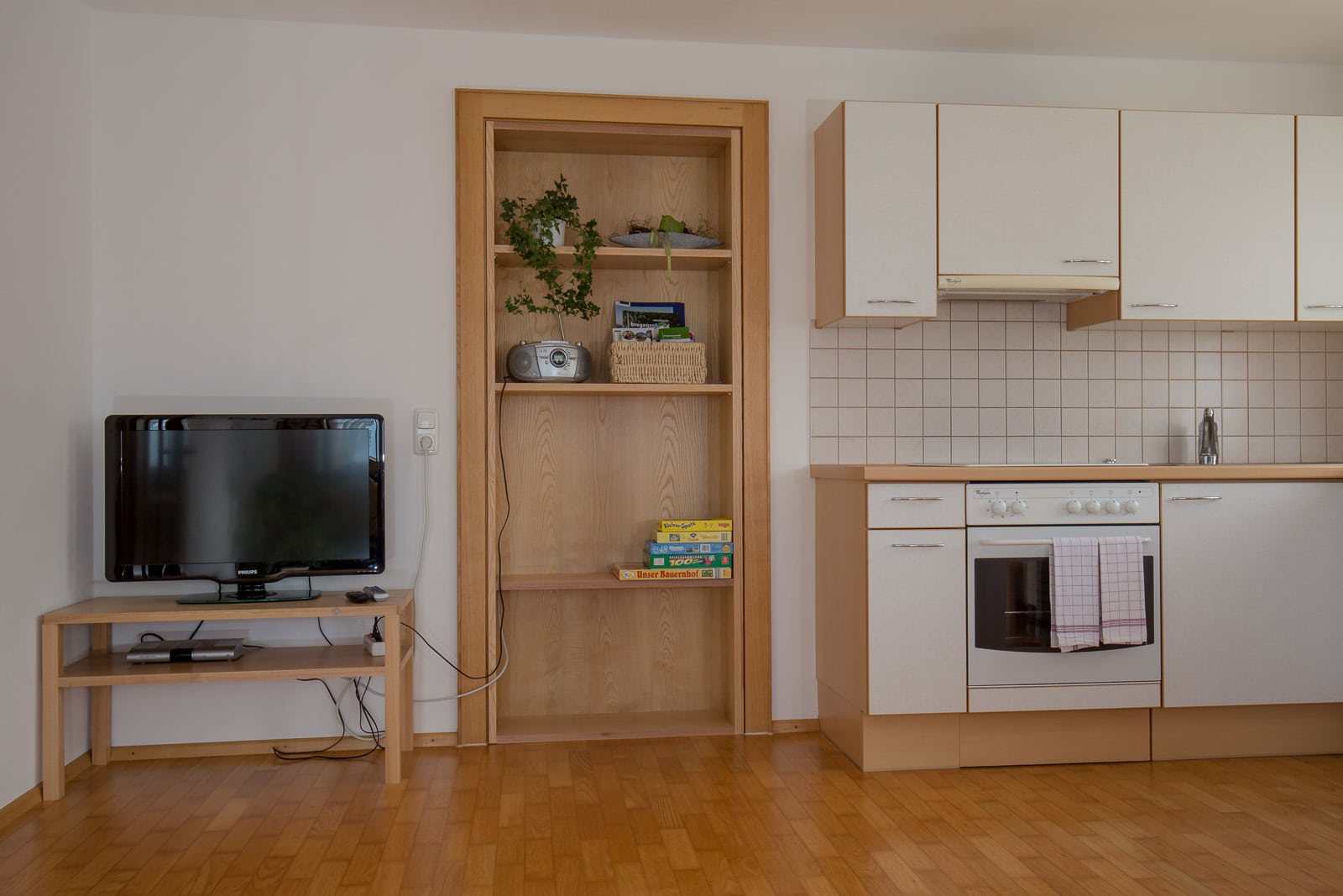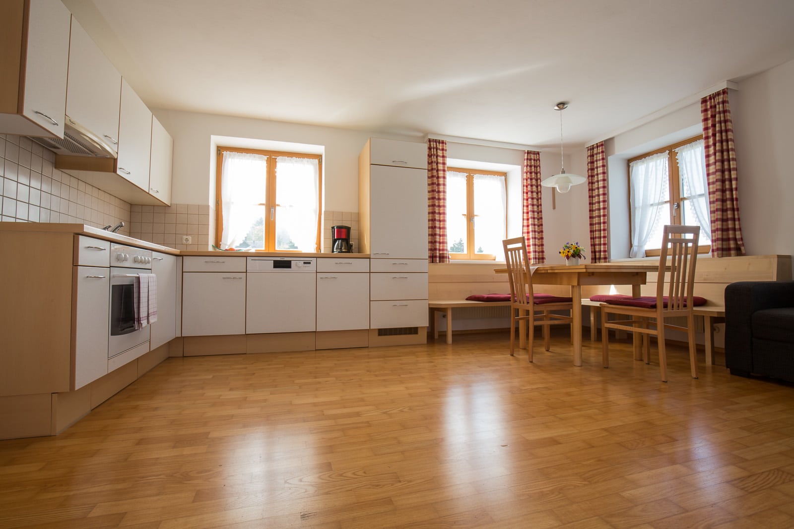 Unsere gemütliche Ferienwohnung im Erdgeschoss, bietet Platz für 2 bis 5 Personen. Die große Wohnküche ist mit Herd, Kühlschrank, Geschirrspüler, Kaffeemaschine, Wasserkocher, Radio und SAT/TV und WLAN ausgestattet. Weiteres stehen Ihnen ein Doppelbettzimmer und ein großes Schlafzimmer mit 3 Betten, sowie ein Bad mit Dusche, Badewanne und WC zur Verfügung. Die Ferienwohnung ist kleinkindgerecht mit gesicherten Steckdosen, Gitterbett, Bettschutzgitter, Wickelmöglichkeit, Kinderstuhl, Toilettensitz, Trittschemel … ausgestattet.
