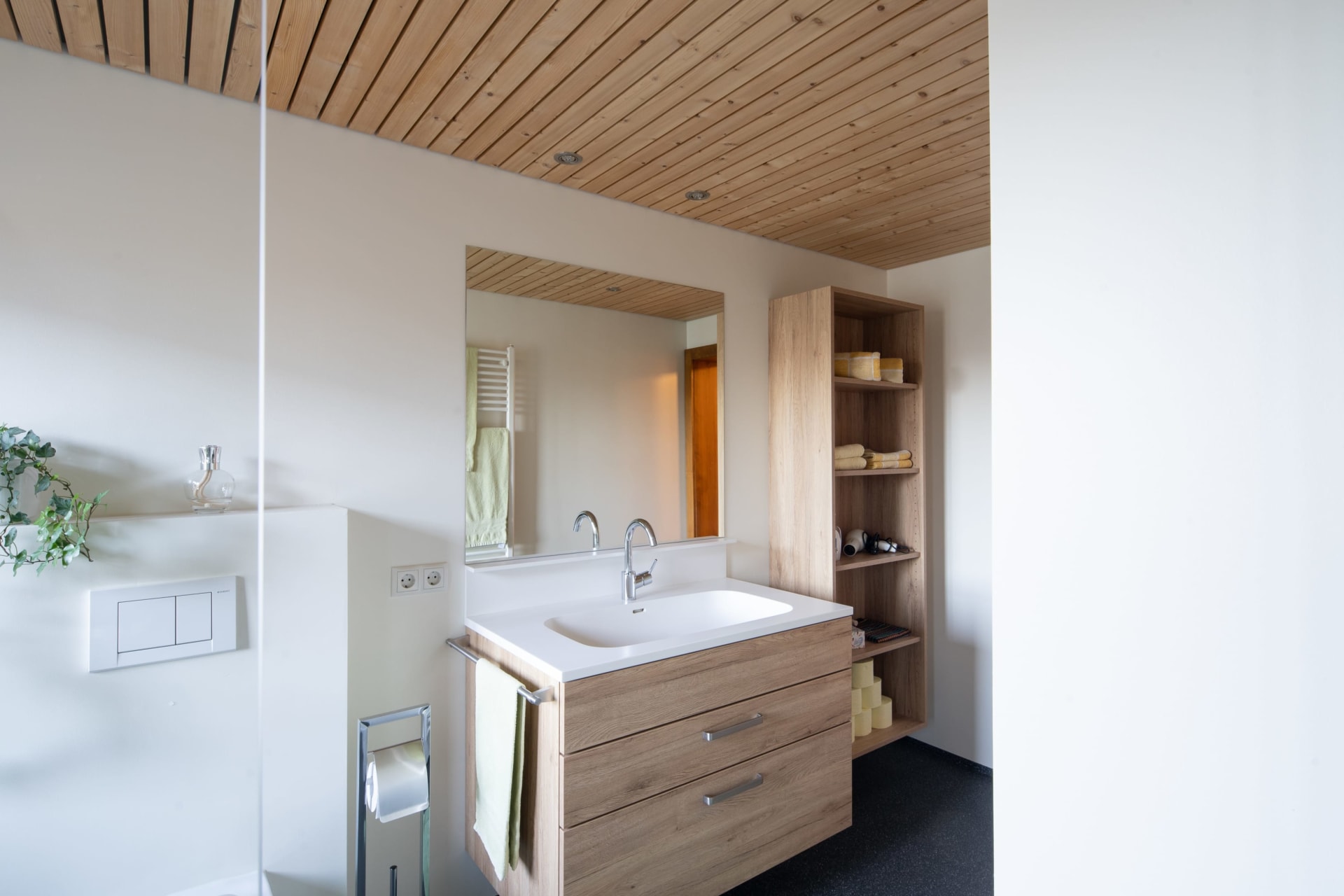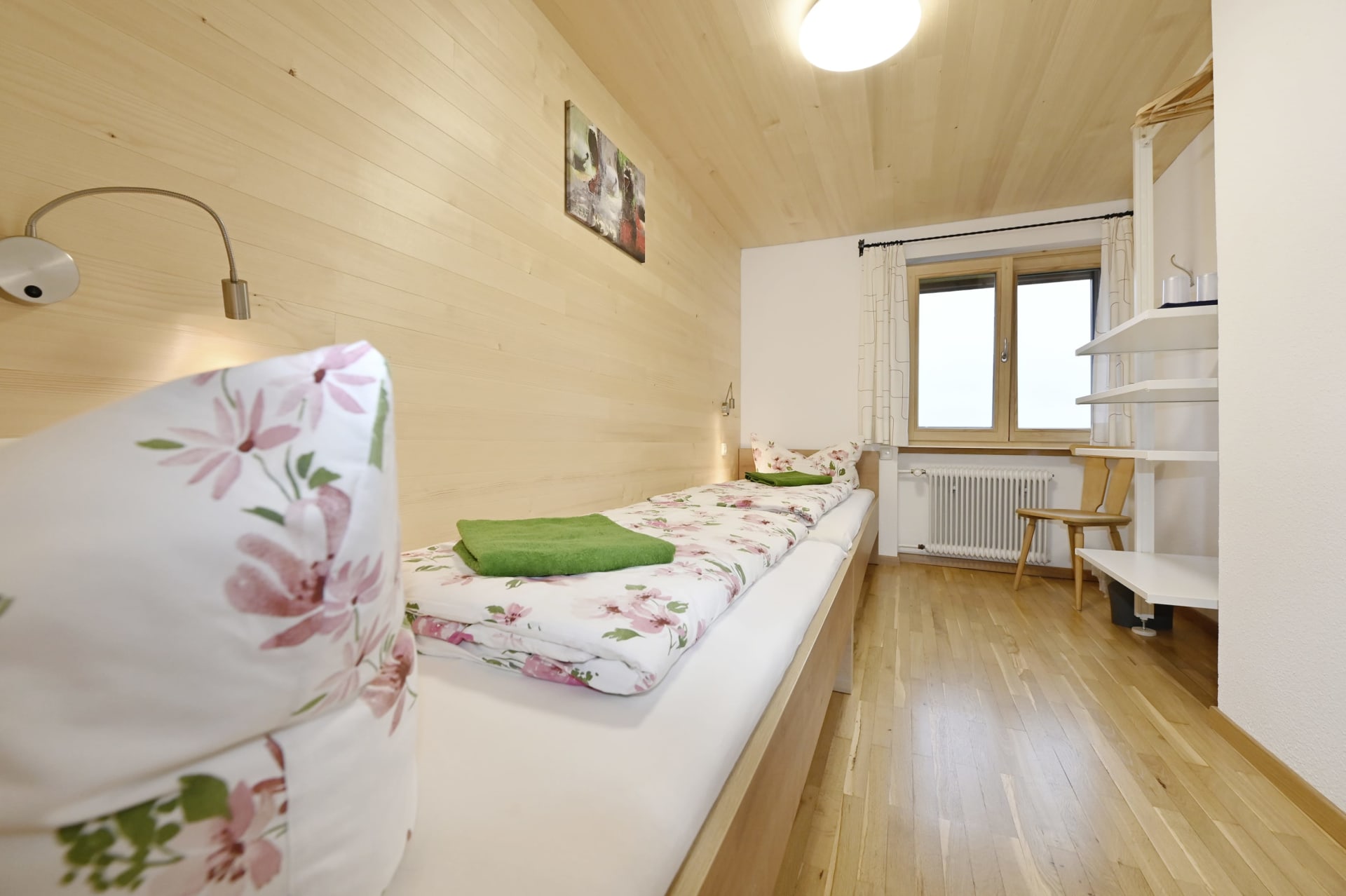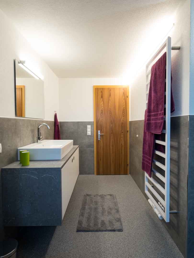 Sie wohnen auf 130 Quadratmetern im 1. Stock. Es erwartet Sie eine voll ausgestattete Küche mit Essbereich und ein durch eine Schiebetüre verbundenes Wohnzimmer. Die drei Doppelzimmern verfügen über je ein Waschbecken für die tägliche Morgenroutine. Ein modernes Badezimmer mit Regenfalldusche und ein zweites, separates WC stehen Ihnen zudem direkt in Ihrem großzügigen Apartment zur Verfügung. Ebenso wie ein Vorrats- und Abstellraum. Zugang zum Balkon ist von den südseitig gelegenen Zimmern aus.