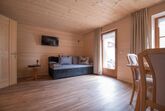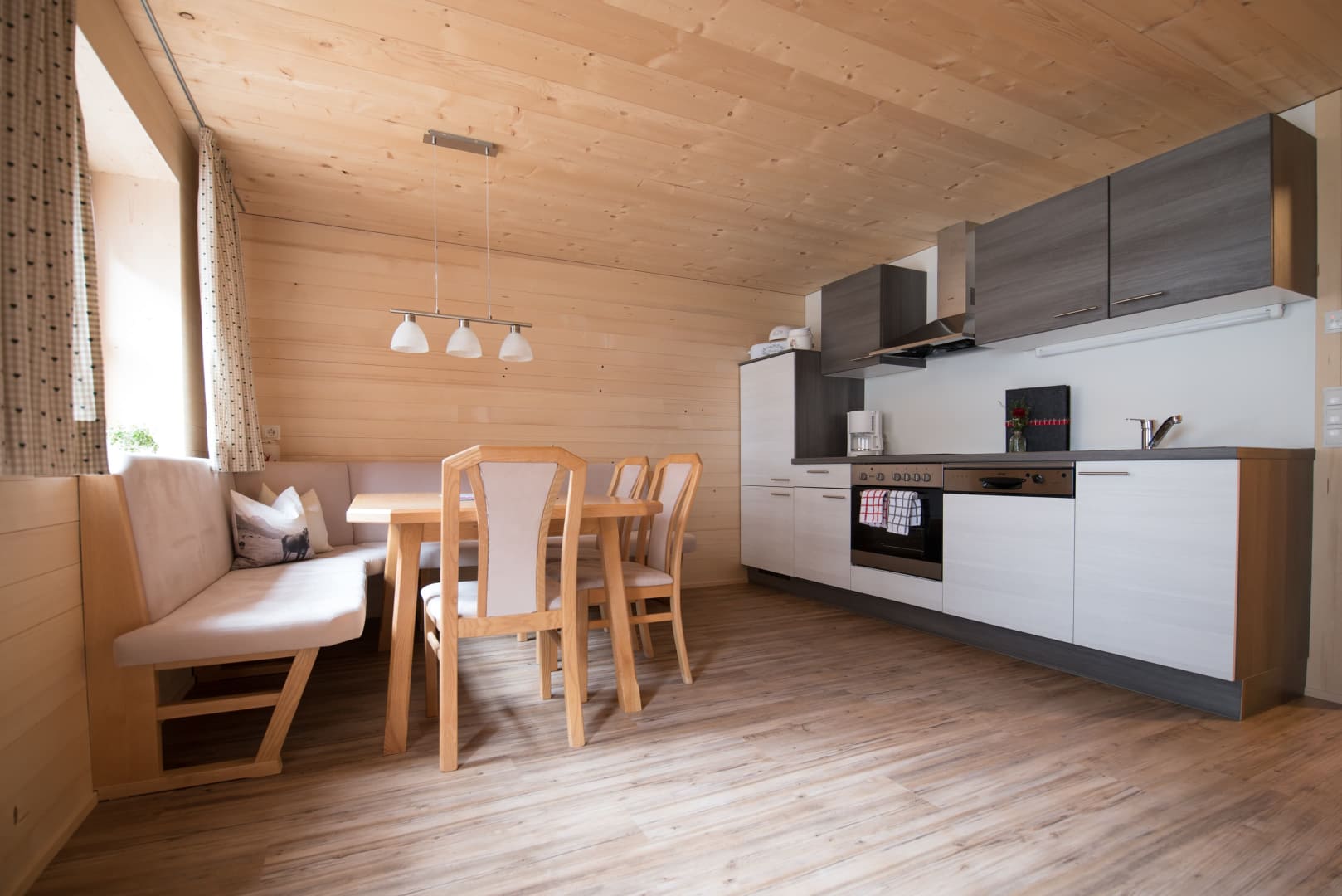 * 1 gemütliche Wohnküche mit voll ausgestatteter Kochzeile mit Backrohr,