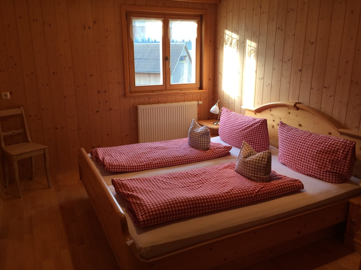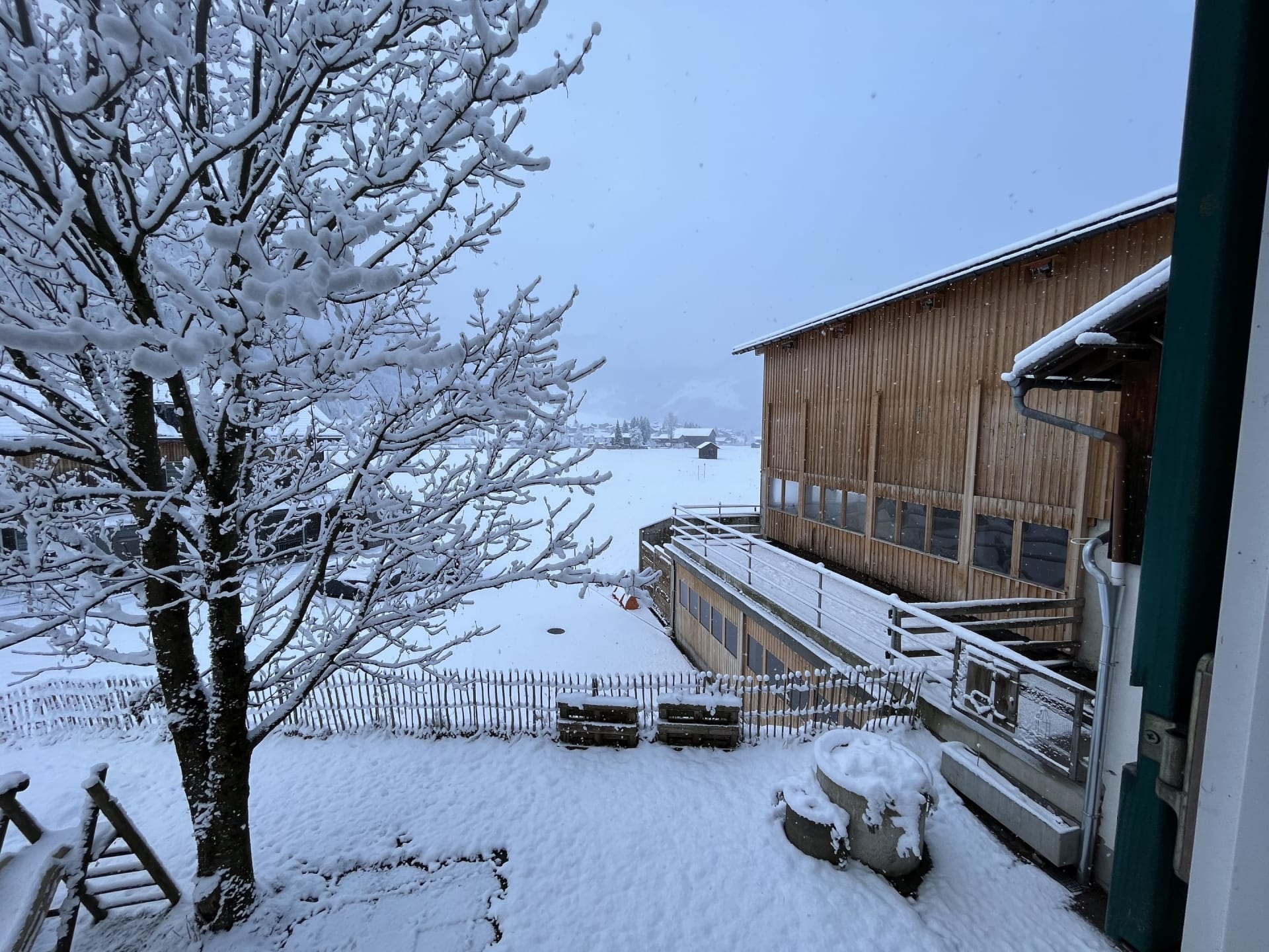 Neu erbaute Ferienwohnung, sehr schön und geschmackvoll mit hellem Holz ausgestattet. Blick Richtung Üntschenspitze.