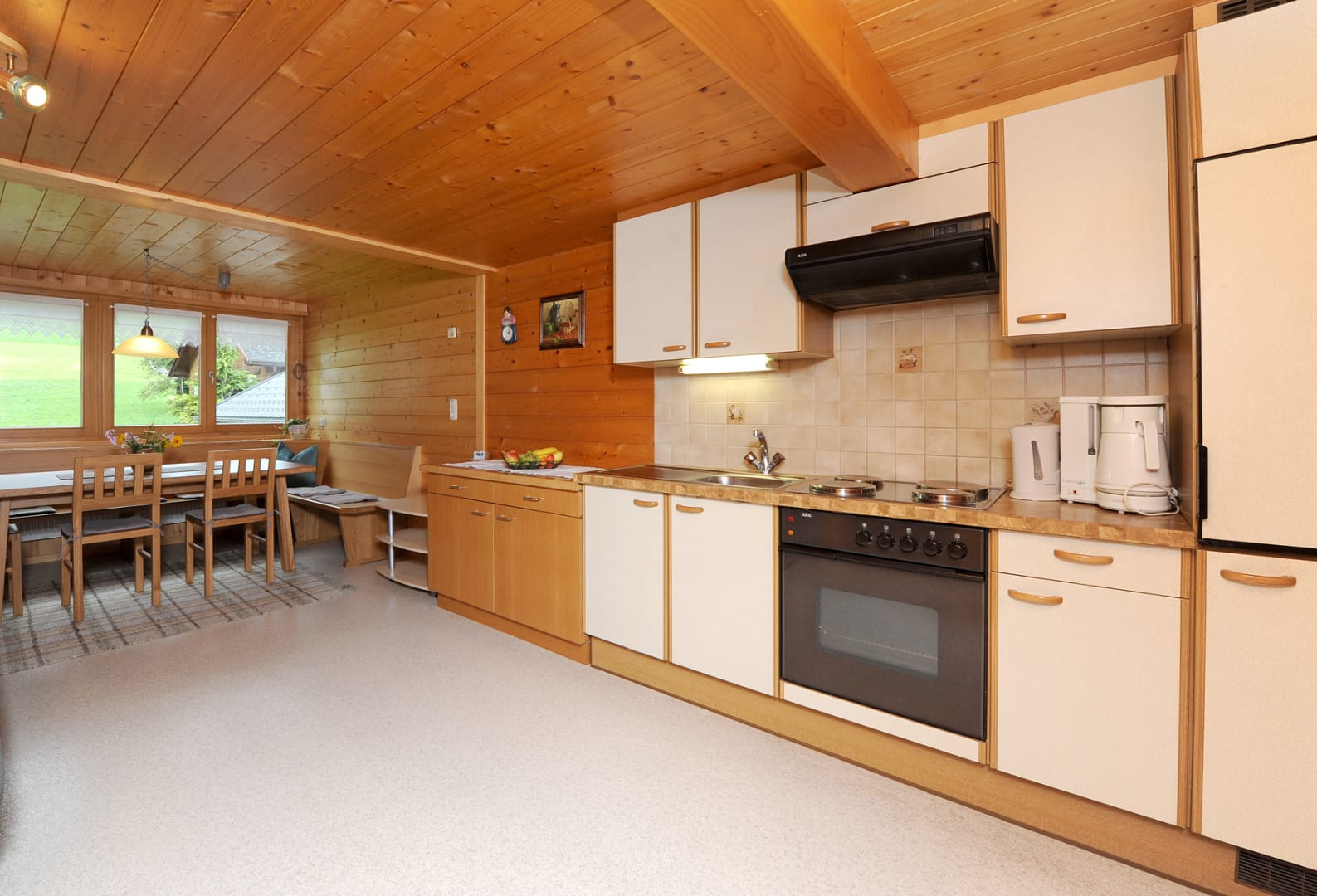 Die Ferienwohnung ist komplett ausgestattet mit Kühlschrank mit kleinem Gefrierfach, Herd mit Backrohr, Kaffeemaschine, Wasserkocher und Toaster. Geschirr, Gläser und Geschirr-, Handtücher und Bettwäsche stellen wir Ihnen ebenfalls gerne zur Verfügung.