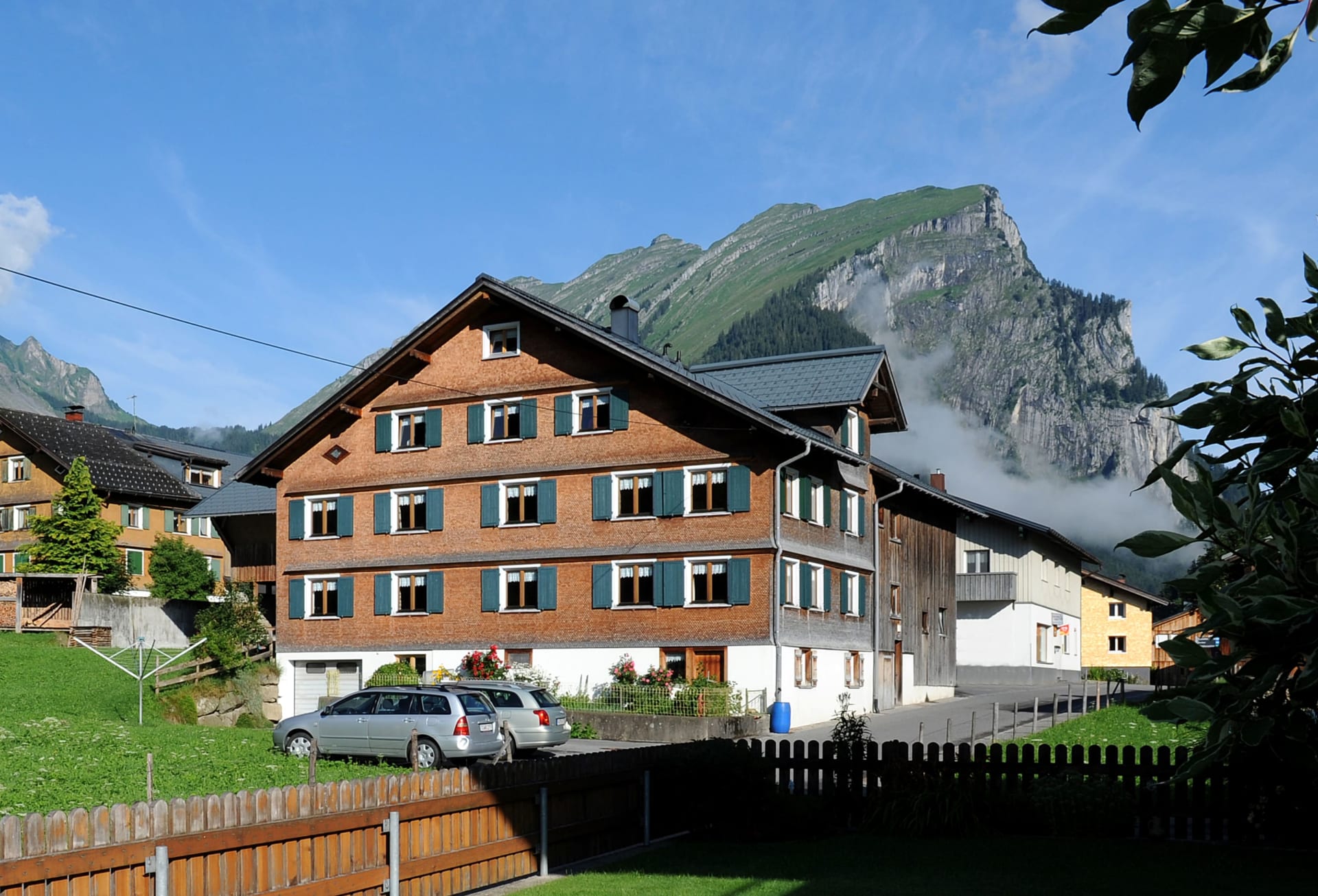 Unser stattlicher Bauernhof liegt in der Ferienregion Au-Schoppernau im Bregenzerwald auf 800 m Seehöhe. Seit Generationen bewirtschaften wir den Hof mit 14 Milchkühen. Den Winter verbringen unsere Tiere im Stall beim Hof. Die Stallarbeit wird immer am Morgen und am Abend mit Füttern, Melken, Saubermachen ... erledigt.