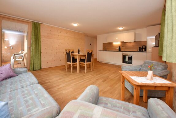 Die Ferienwohnung ist im 2. OG und verfügt über eine geräumige Wohnküche, 2 Schlafzimmer, Badezimmer, WC und Balkon. Im Stiegenhaus gibt es ein Doppelzimmer mit Dusche/WC, das idealerweise zu dieser Ferienwohnung dazu gemietet wird. Es eignet sich ideal für eine Familie und deren Großeltern oder ein befreundetes Ehepaar - einfach für Gäste, die zusammen verreisen und doch nicht die ganze Zeit auf sehr nahem Raum sein möchten.