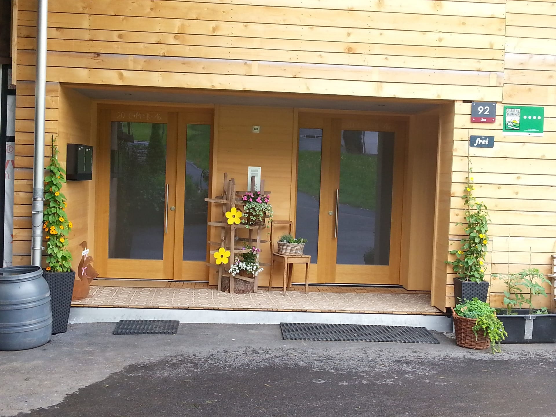 Die Ferienwohnung ist im 2. OG und verfügt über eine geräumige Wohnküche, 2 Schlafzimmer, Badezimmer, WC und Balkon. Im Stiegenhaus gibt es ein Doppelzimmer mit Dusche/WC, das idealerweise zu dieser Ferienwohnung dazu gemietet wird. Es eignet sich ideal für eine Familie und deren Großeltern oder ein befreundetes Ehepaar - einfach für Gäste, die zusammen verreisen und doch nicht die ganze Zeit auf sehr nahem Raum sein möchten.