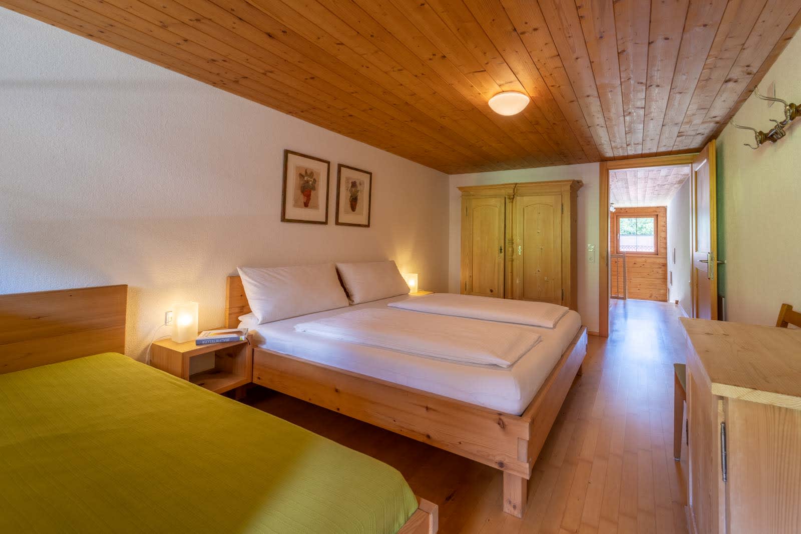 Im 1. Stock sind 2 Schlafzimmer (1 Doppelzimmer mit Balkon und 1 Dreibettzimmer) und Badezimmer mit Dusche/WC.
