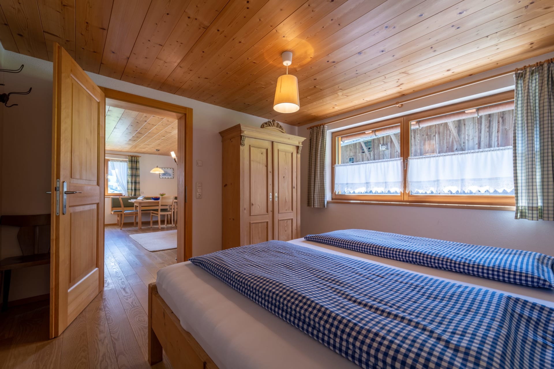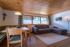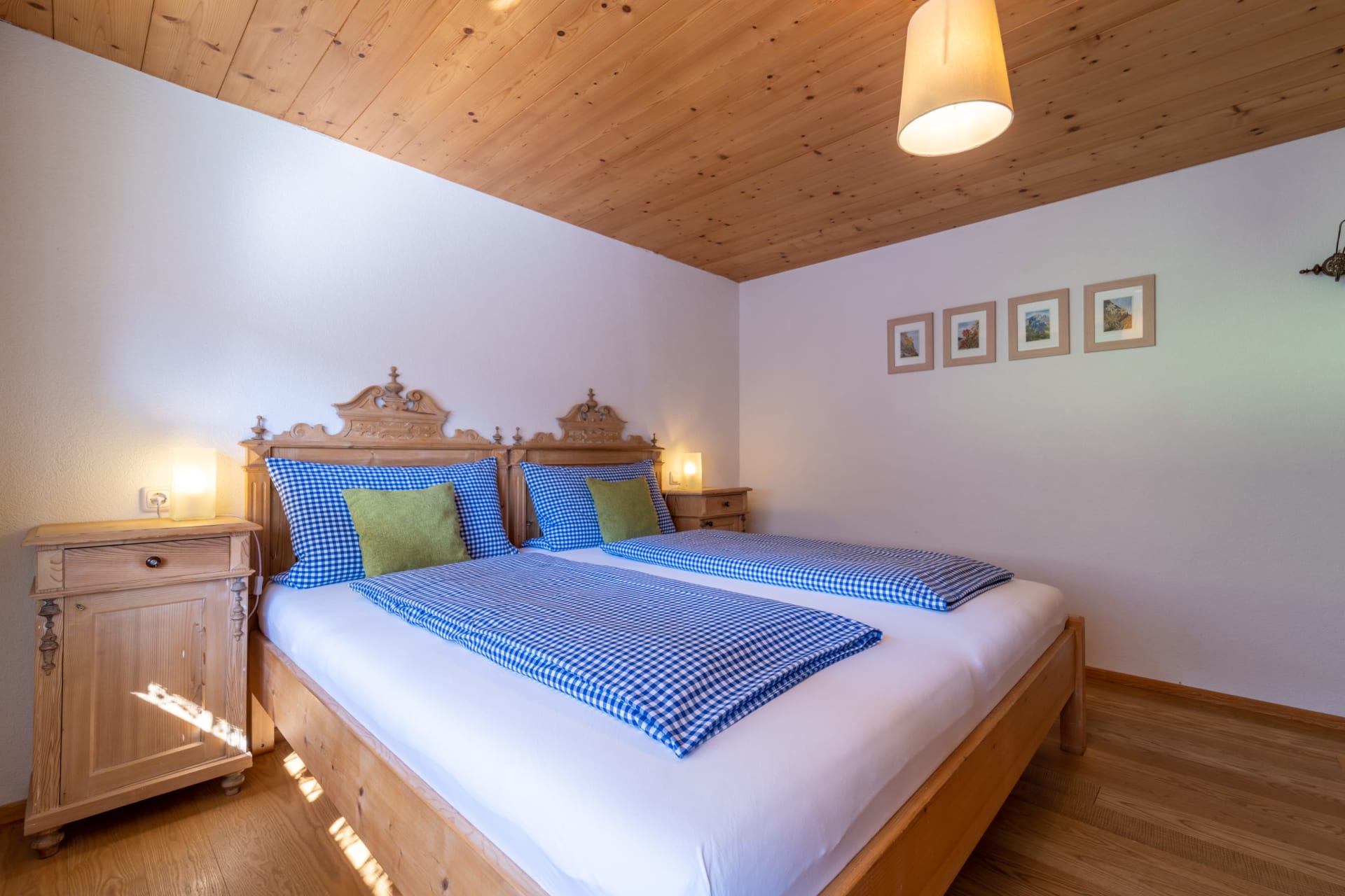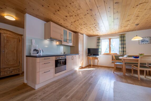 Wohnung Üntschen ist 45 m² groß und befindet sich im 1. Stock unseres Bauernhofes. Die Wohnung hat ein Schlafzimmer (1 Doppelbett), ein großes Wohn-und Essbereich mit Sofa, komplett ausgestatteter Küchenzeile (Geschirrspüler, Kühl-Gefrierschrank, Backofen, Kaffeemaschine, Wasserkocher etc.), Sat-TV, WLAN, Badezimmer mit Dusche/WC, Föhn, inkl. Handtüchern.
