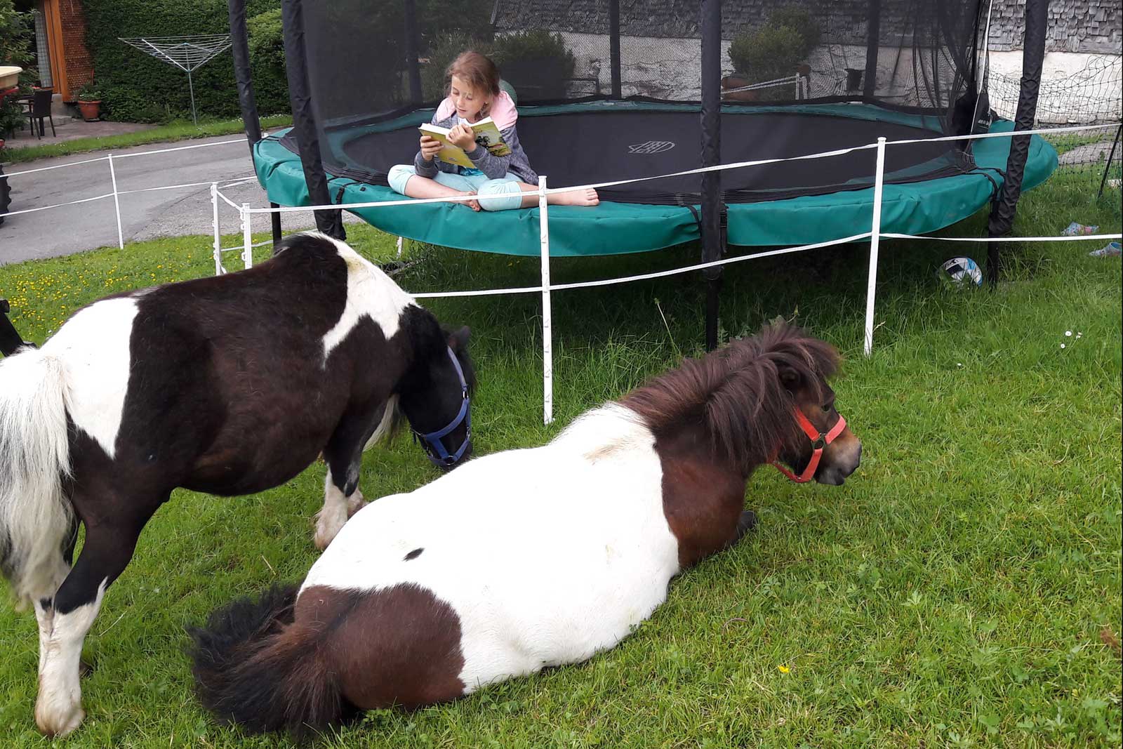 Höchst erfreut und begeistert sind die kleinsten Gäste unseres Hauses über die Mini-Pferde bei uns am Hof. So wird der Spaziergang mit den Eltern zum einzigartigen Erlebnis.
