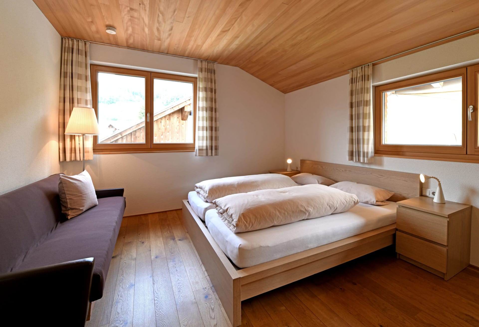 Diese 54m² große Wohnung befindet sich im 3. Obergeschoss (Dachgeschoss). Sie besteht aus einer Wohnküche, einem Schlafzimmer, Dusche/WC, einem Zusatzzimmer und einer Dachterasse mit Panoramablick.