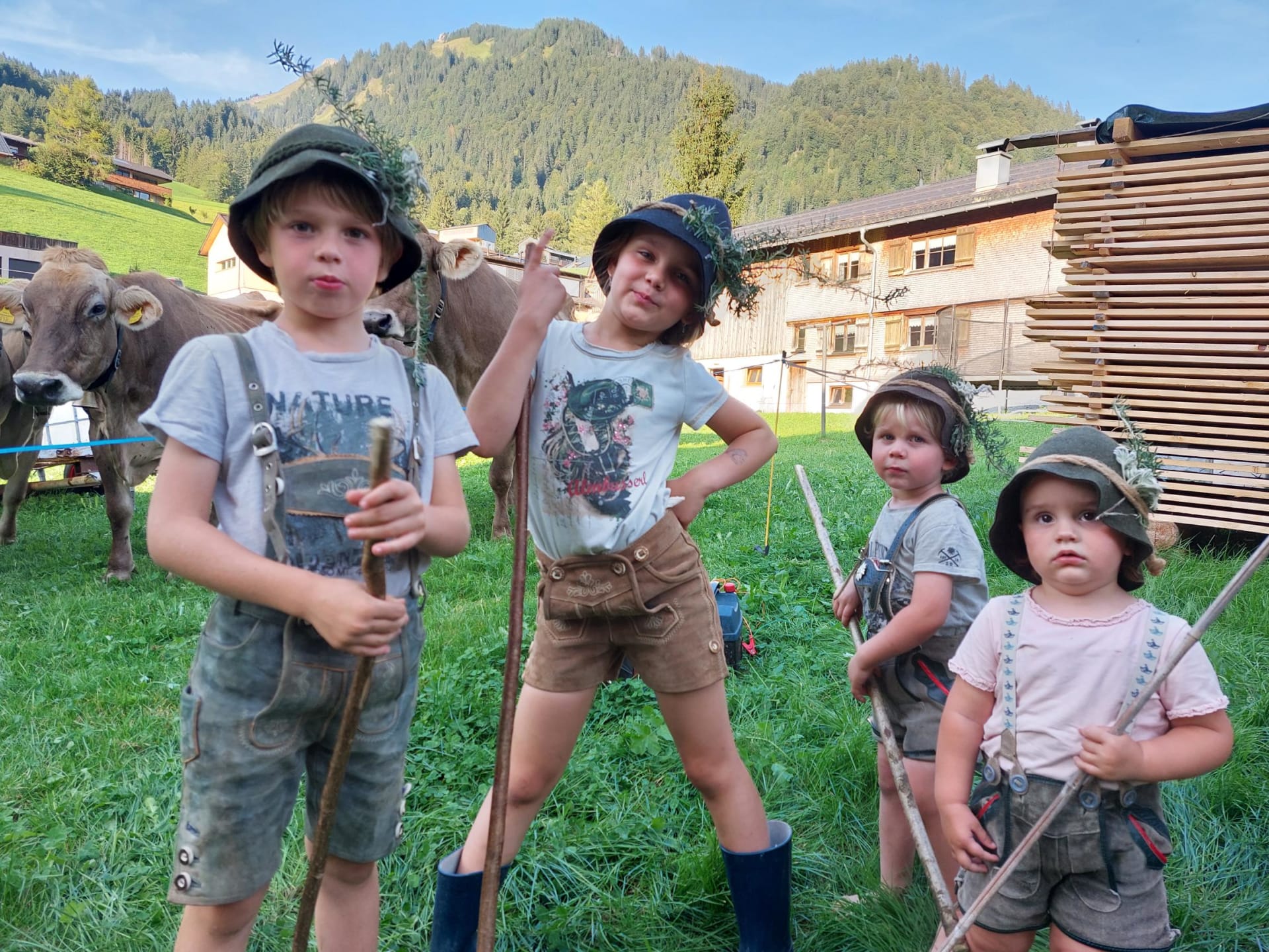 Ihre Gastgeber Theresa & Daniel Geiger mit Mathias, Klara, Clemens und Paula
