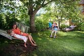 Die Lage des Hofes im Grünen und doch fußläufig in wenigen Gehminuten das Ortszentrum erreichbar, ist ideal für einen autofreien Urlaub mit der ganzen Familie.