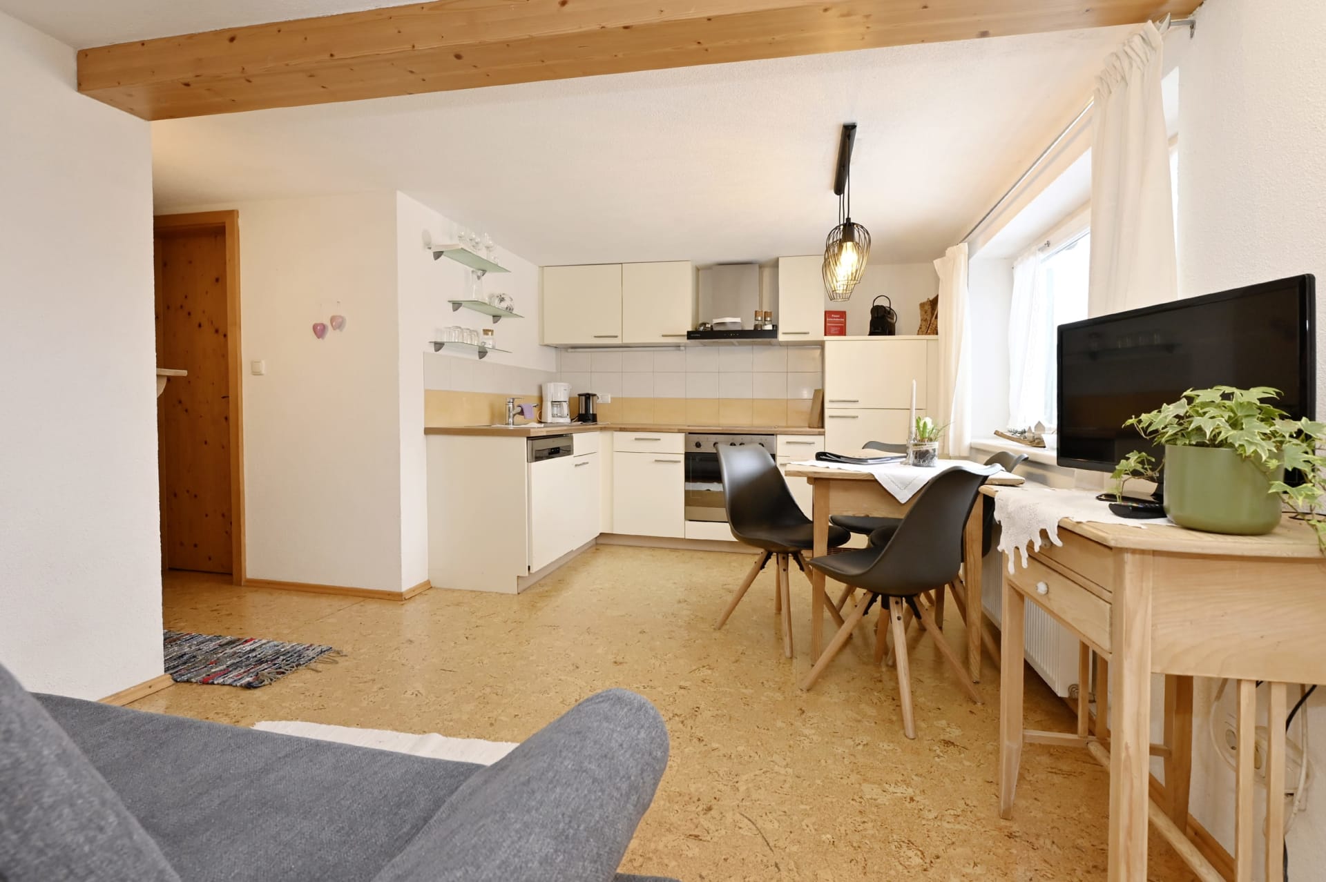 Diese zentralgeheizte 50m²-Wohnung verfügt über eine voll ausgestattete Wohnküche mit Spülmaschine und beheizbarem Kachelofen, einem Sofa, TV/Radio und einen Süd-Balkon. Ein Doppelbett-Schlafzimmer, ein Zimmer mit zwei getrennten Betten sowie Dusche/WC.