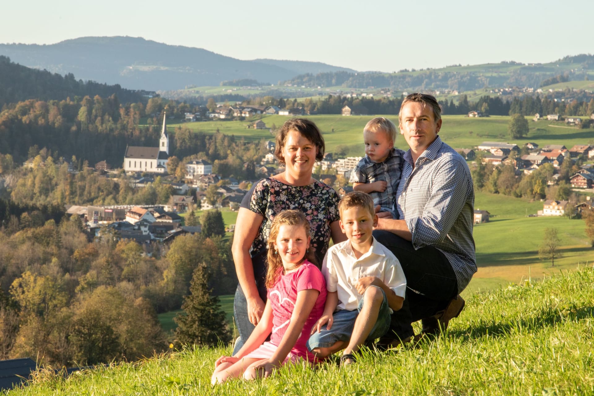 Wir? Ja, das sind Pamela und Roman mit Lisa-Sophie, Elias und Paul sowie den Großeltern Helene und Jodok, die ebenso am Bauernhof leben.