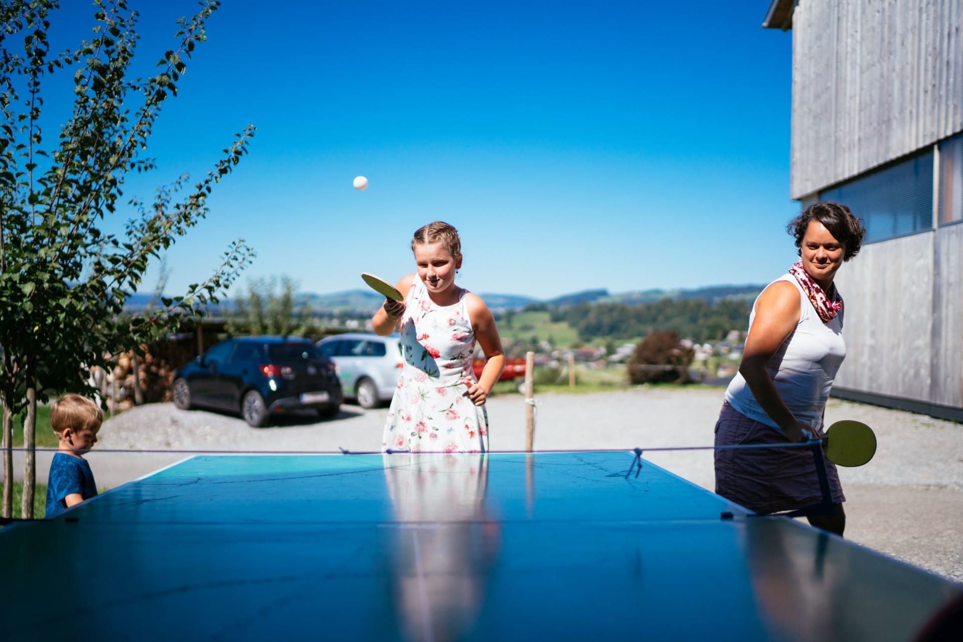 Die Lage des Hofes im Grünen und doch fußläufig in wenigen Gehminuten das Ortszentrum erreichbar, ist ideal für einen autofreien Urlaub mit der ganzen Familie.