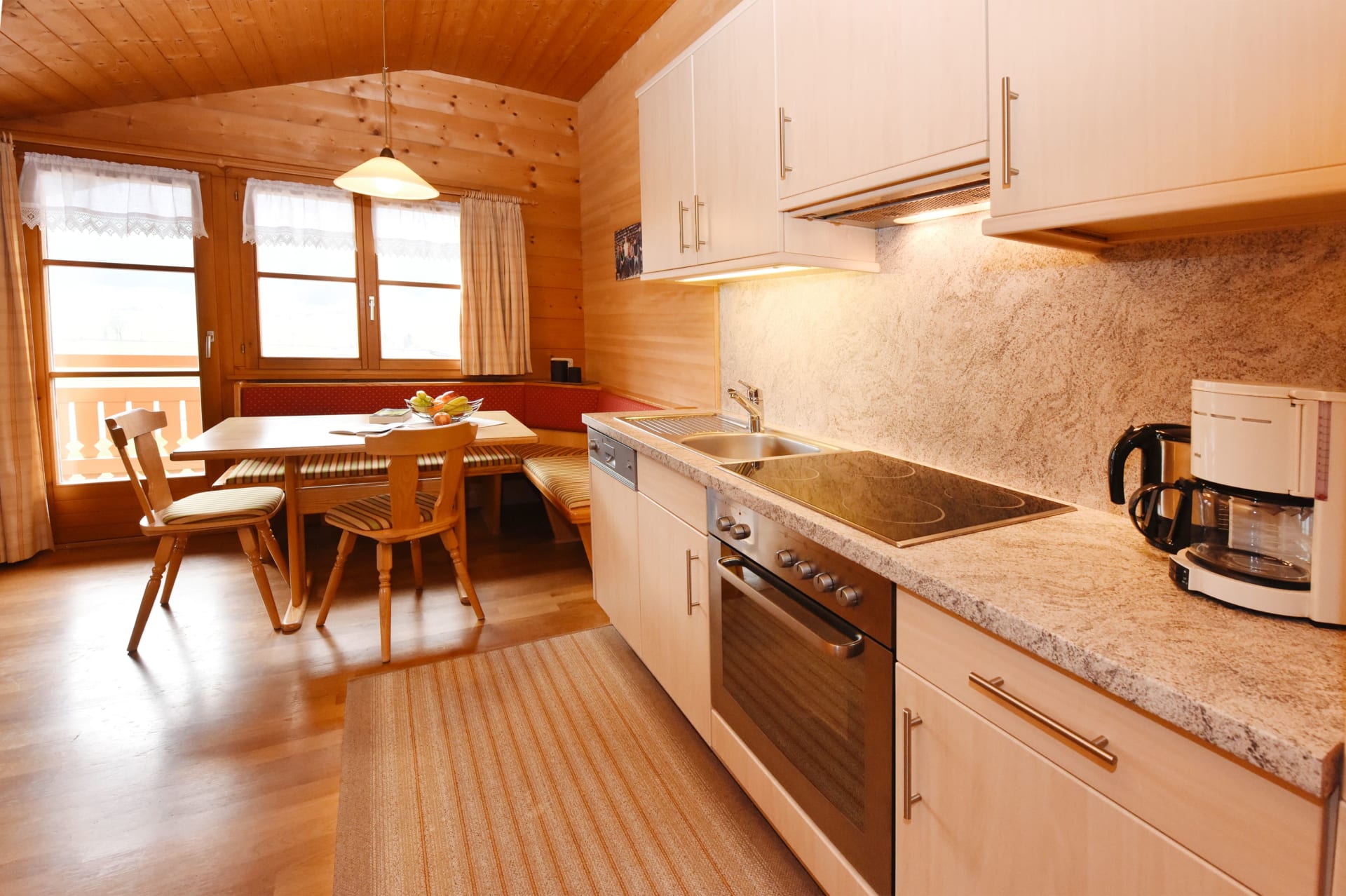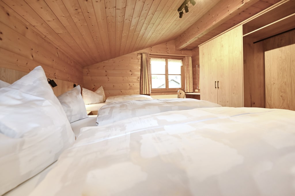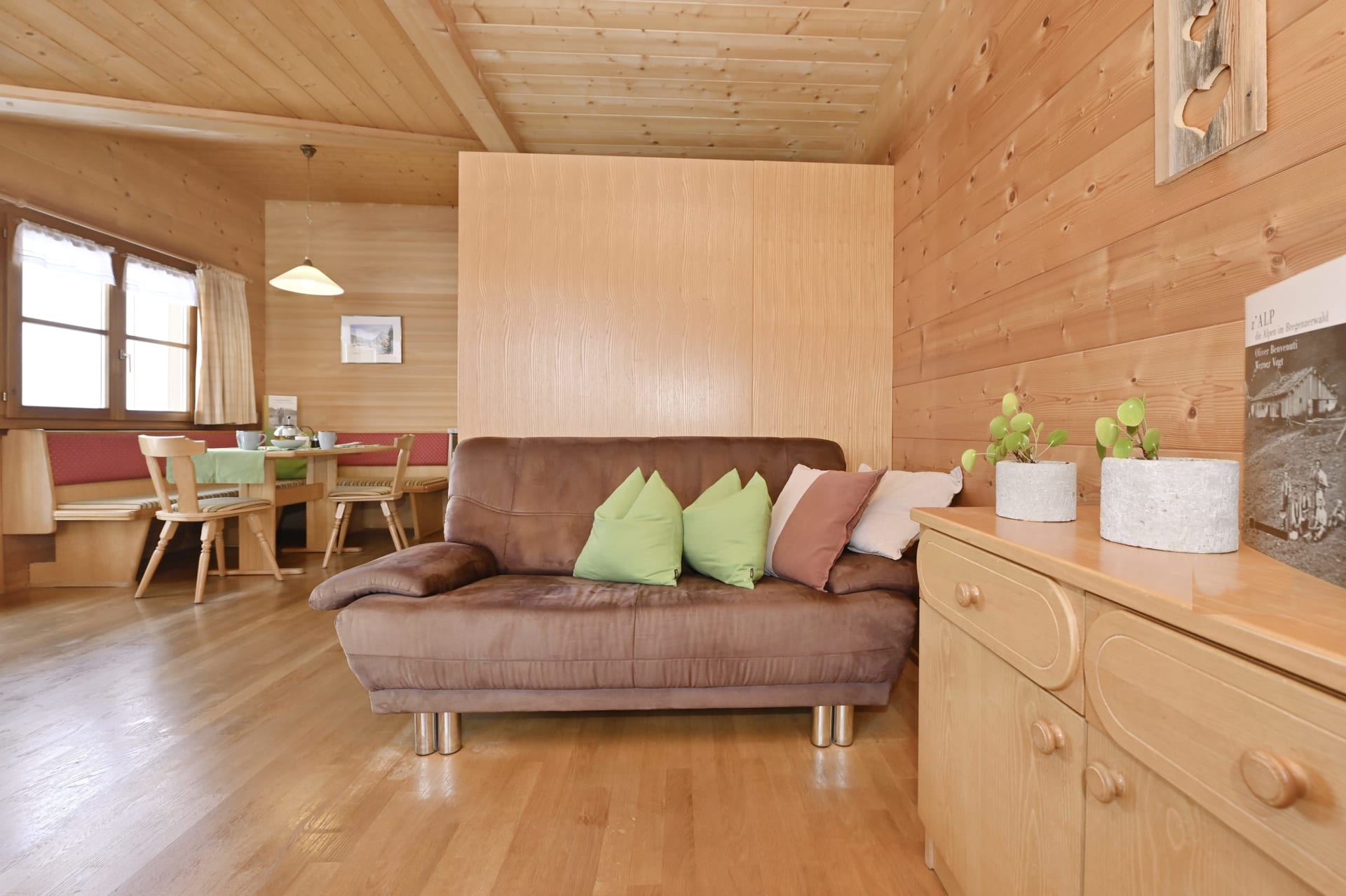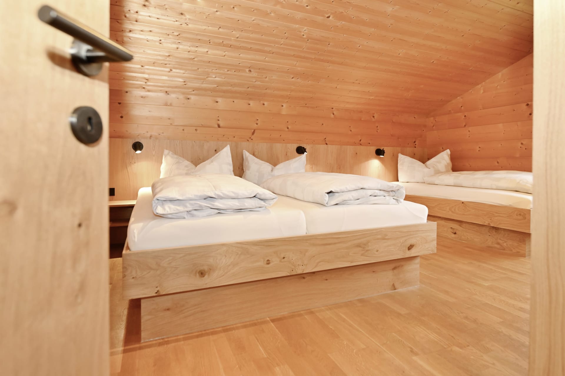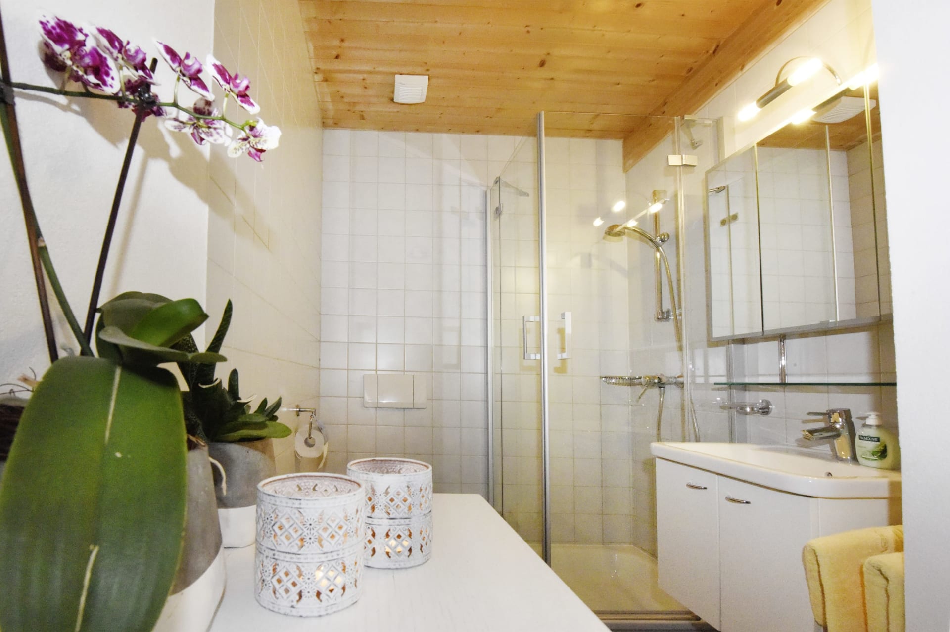 Die Wohnung verfügt über zwei separate Schlafzimmer, die im Jahr 2024 von einem heimischen Schreiner liebevoll und hochwertig mit Vollholzmöbeln renoviert wurden – für ein besonders wohliges Schlafklima und ein Stück Natur im Raum. Der große Wohnbereich mit integrierter Küche, gemütlicher Essecke und komfortabler Couch lädt zum Verweilen ein. Vom sonnigen Südbalkon genießen Sie einen herrlichen Blick auf die umliegende Bergwelt.