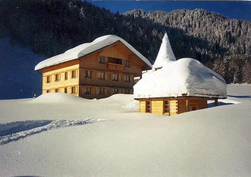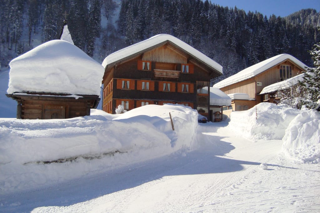 Ums Haus ist genug Platz zum Toben und Spielen – für Klein und Groß. Schneehöhlen bauen, rodeln und rutschen im Schnee, heißt für Kinder Freiheit.