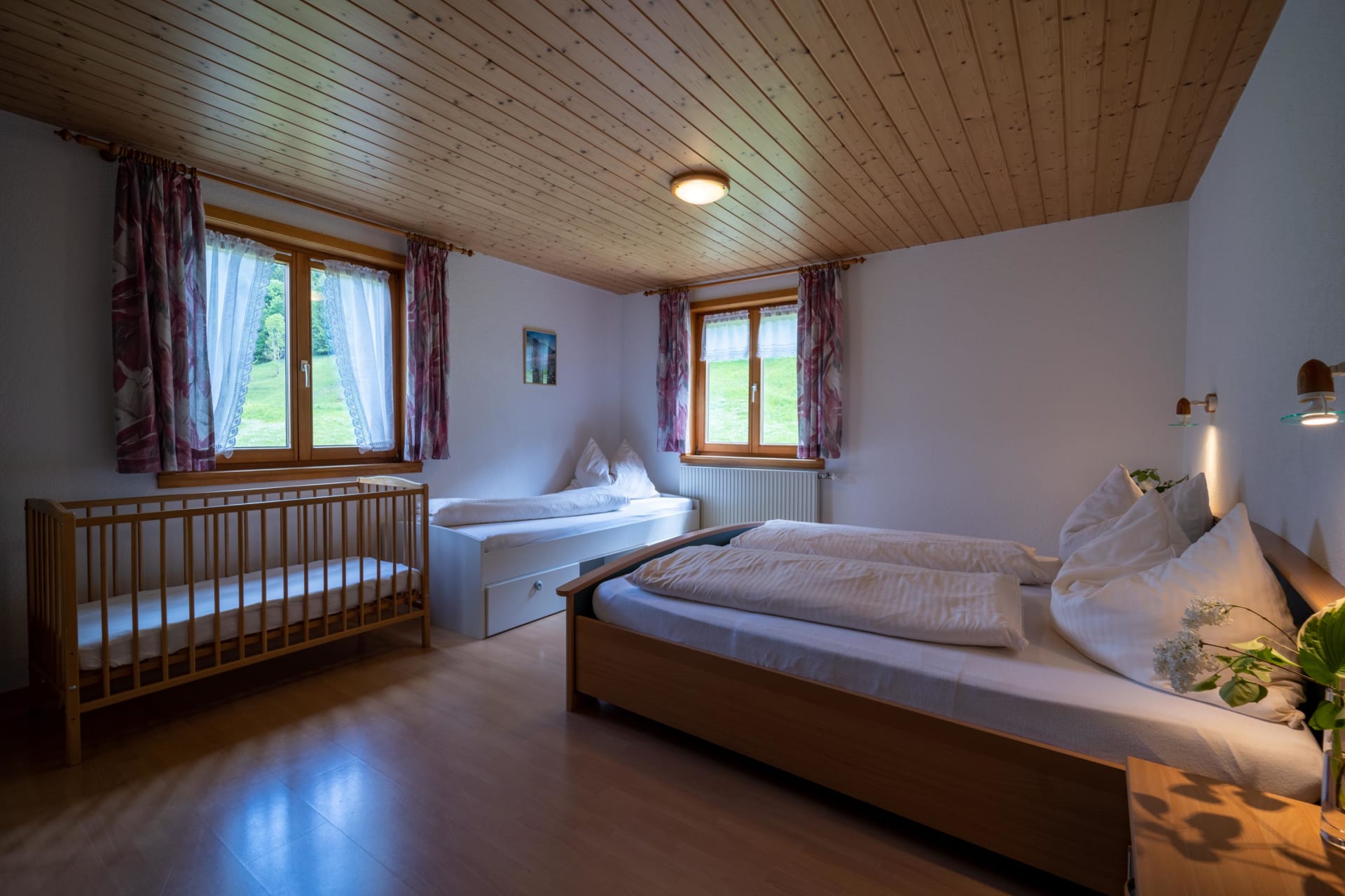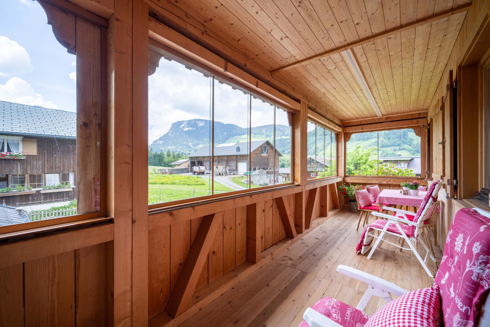 Helle, freundliche Ferienwohnung mit einem Balkon und Bilck zur Ünschenspitze und zur Viehweide.