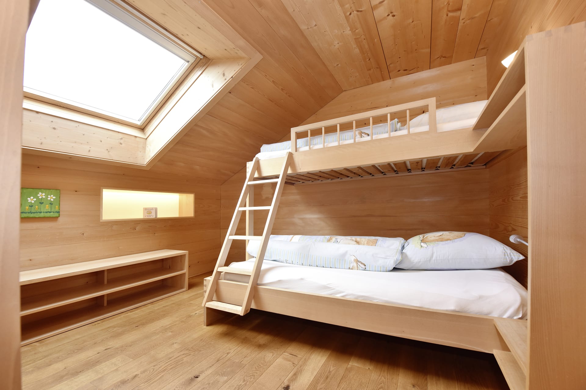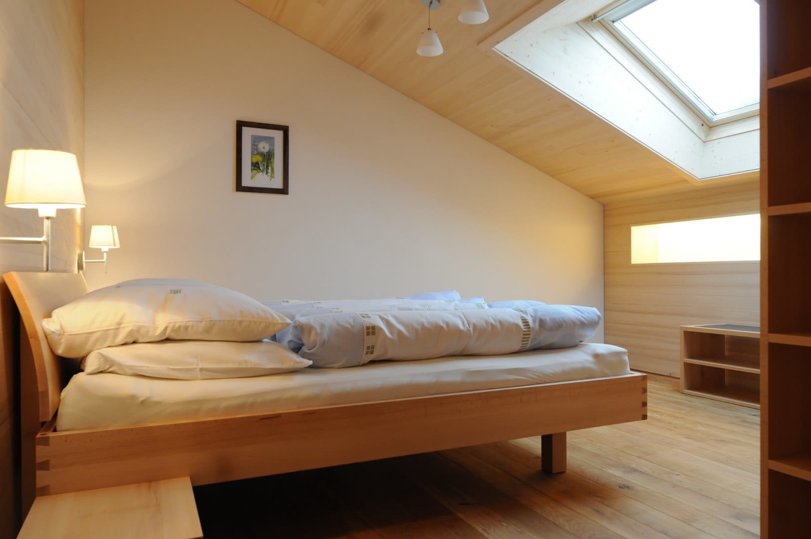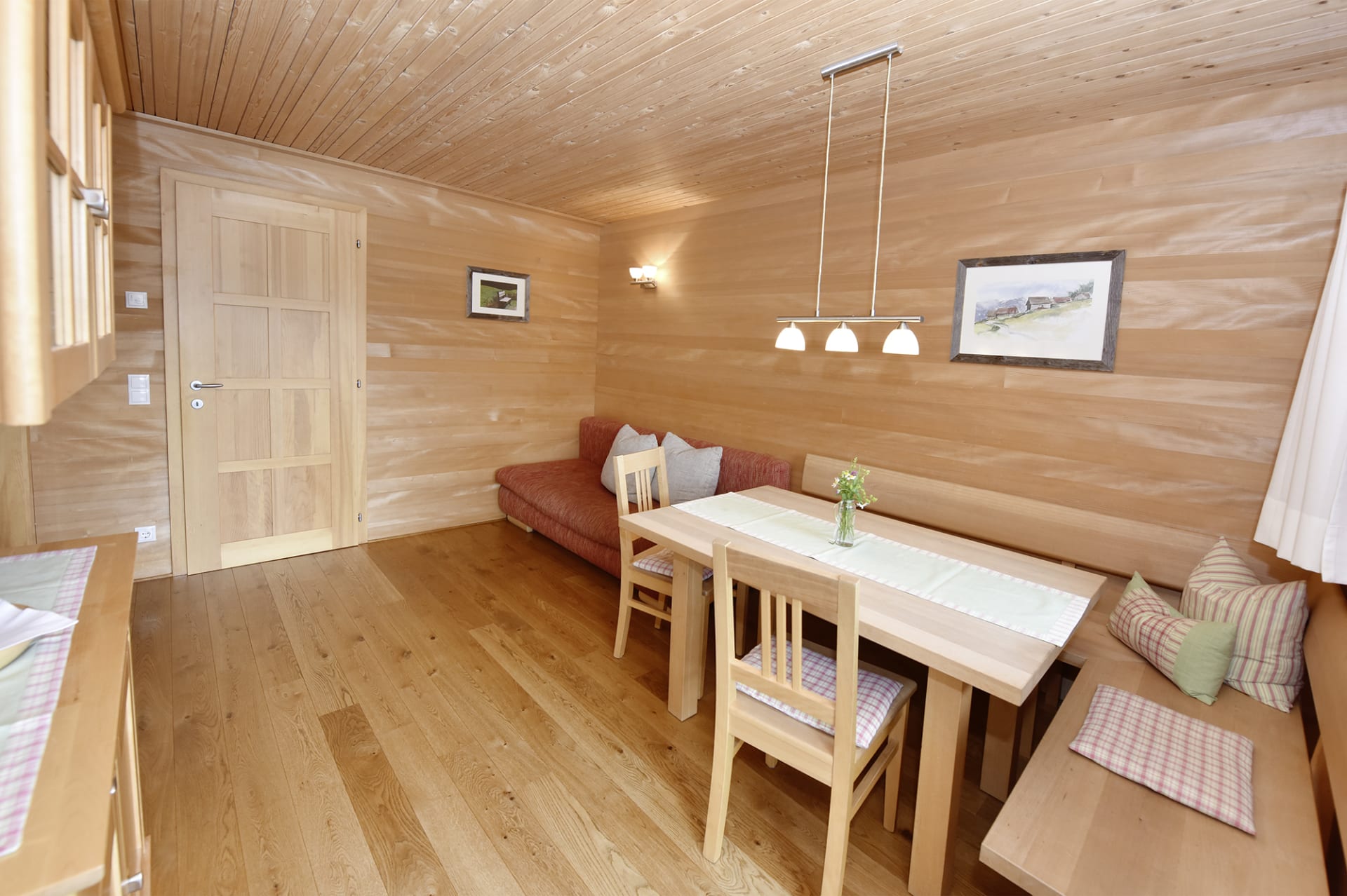 Helle und geräumige Ferienwohnung mit Vollholzmöbeln in Buche, warmen Eichen-Holzböden und natürlichen Materialien ausgestattet