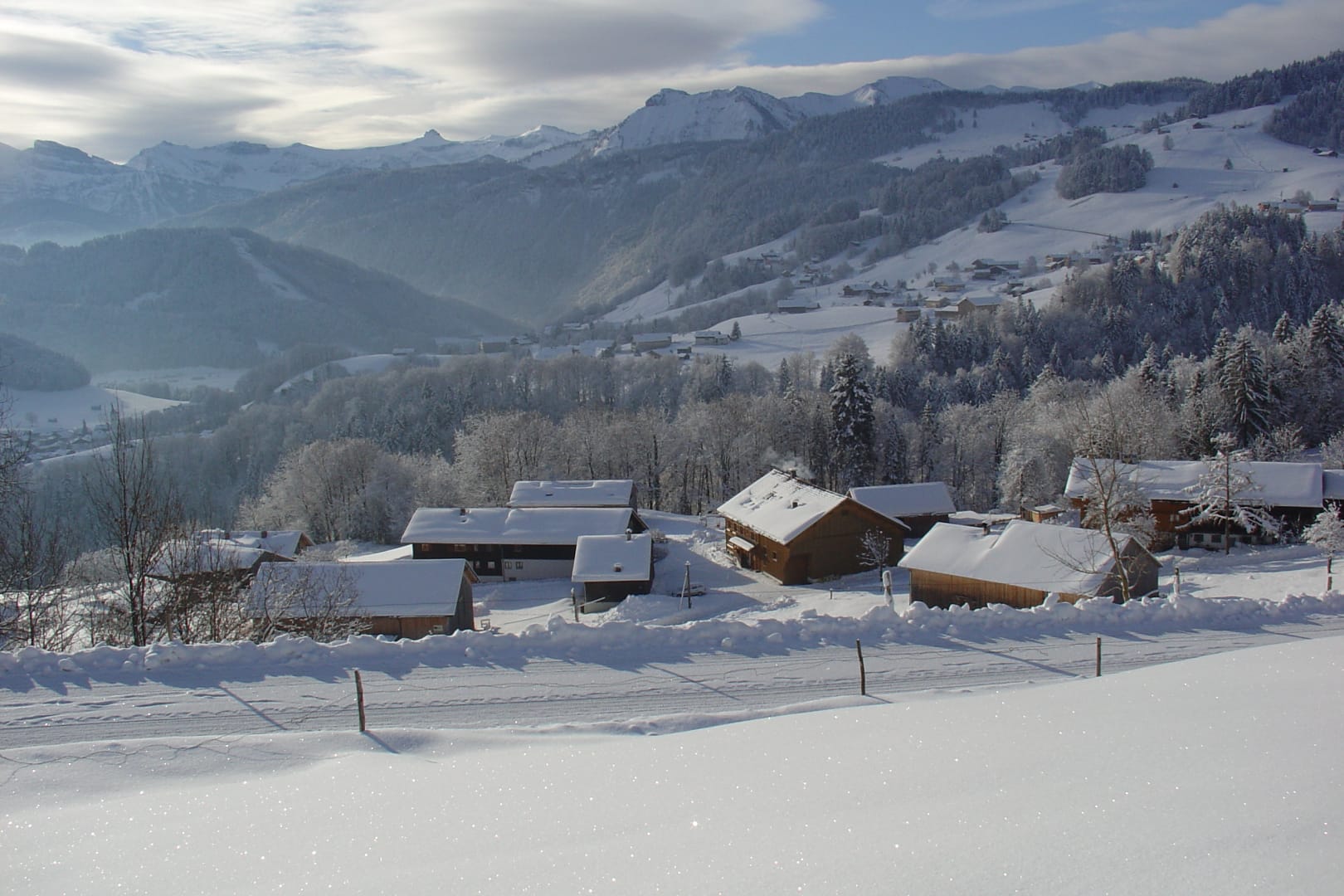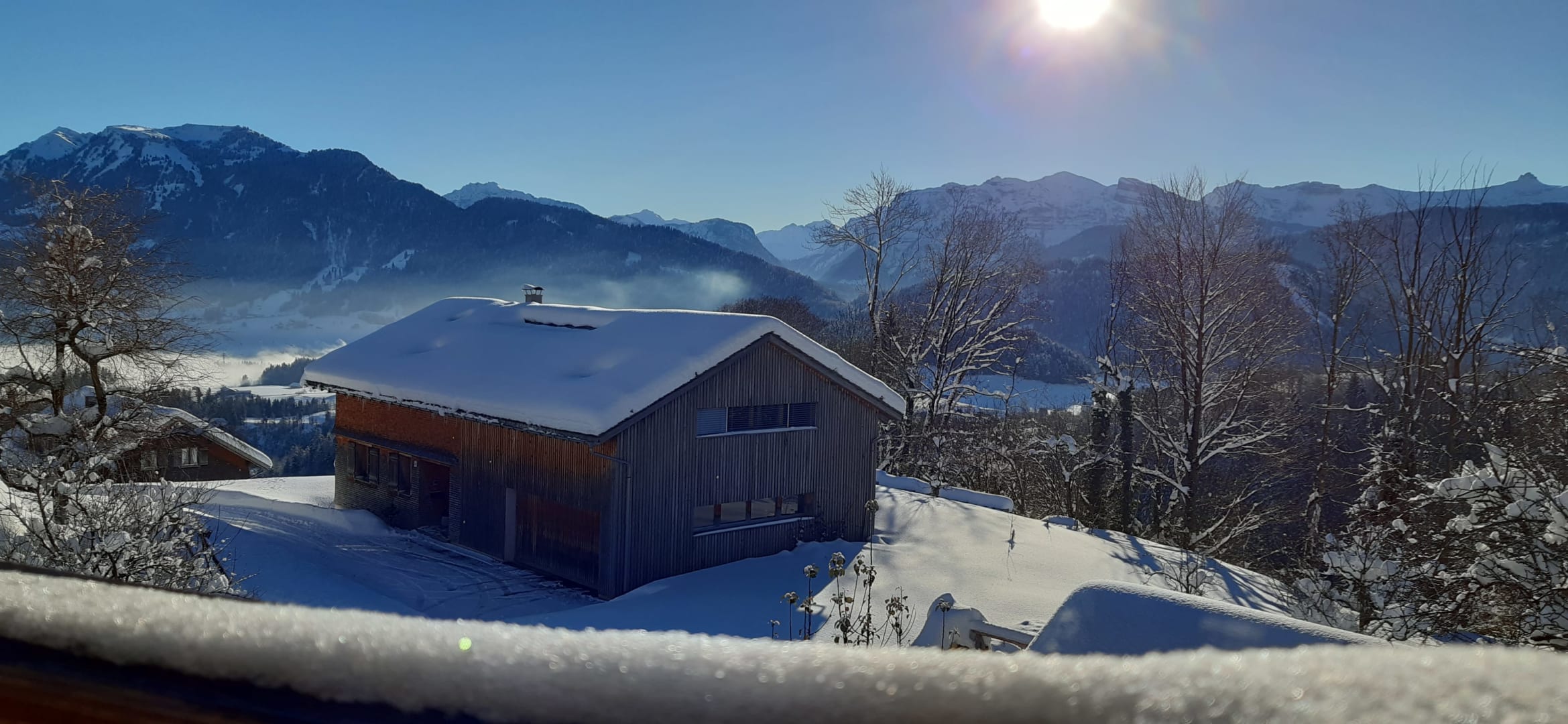 Am Sonnenhang von Schwarzenberg gelegen erwartet Sie ein traumhafter Ausblick in die verschneiten Täler des Bregenzerwaldes.