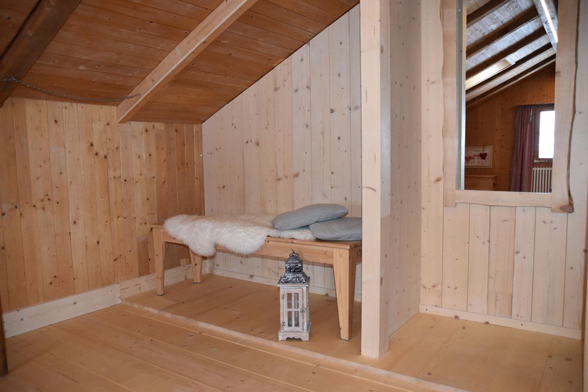 Alleinstehendes kleines Chalet (36 m2) für 2 bis 4 Personen. Wohnraum mit Küche. Schlafzimmer im 1. Stock unter dem Dach. Eigene Terrasse und Gartensitzplatz. Komplett eingerichtete Küche mit Backofen und Kaffeemaschine. Schlafzimmer mit Französischem Bett 160 x 200 cm, Dachfenster, Satelliten-TV, Bettsofa (140 x 200 cm) für 2 Personen im Wohnraum. Kleines Bad mit Dusche/WC. Toilettenwäsche auf Wunsch verfügbar. Haustiere sind nicht erlaubt.