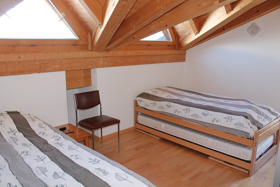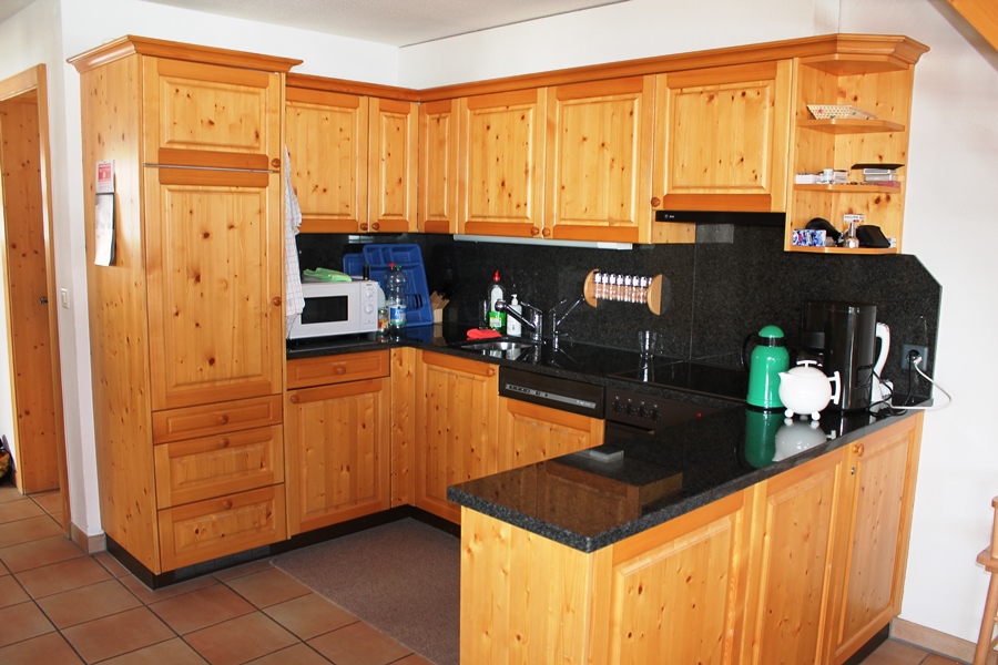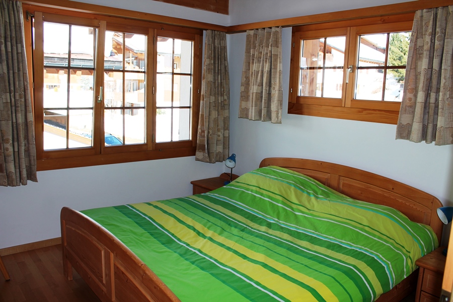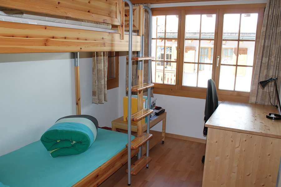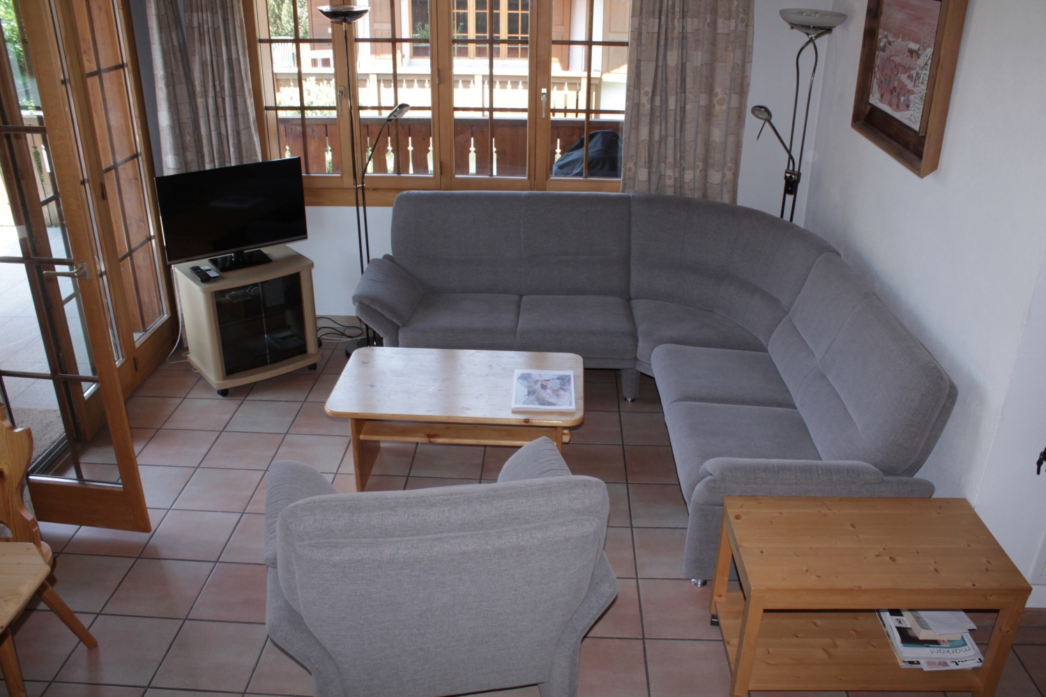 Schöne 4.5 Zimmer-Wohnung mit Balkon. Wohnzimmer mit Specksteinofen (Holz vorhanden), TV, Radio; schöne Küche mit Geschirrspüler, 3 Schlafzimmer: 1 Zimmer mit Doppelbett, 1 Zimmer mit Einzelbetten, 1 Zimmer mit Kajütenbetten. Badezimmer mit Dusche/WC. WLANKurtaxen sind im Tagespreis inbegriffen. Küchenwäsche vorhanden. Autoabstellplatz gratis.Bodenbeläge: Wohnzimmer Platten, Schlafzimmer Teppich